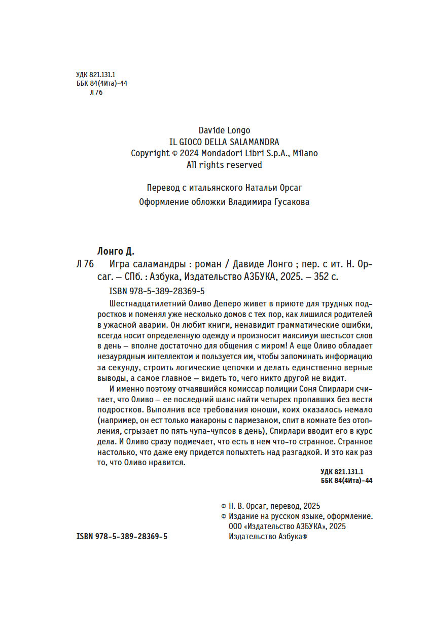 | Название в оригинале | Il Gioco Della Salamandra (The Game Of The Salamander) |
