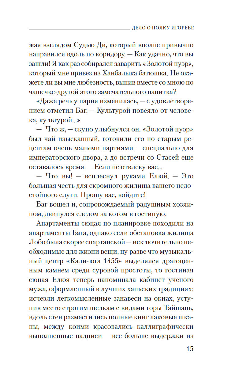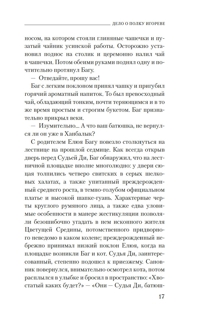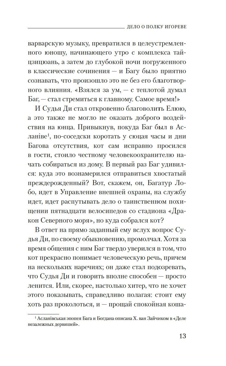 Еще в Асланiве, откуда ланчжун Багатур Лобо и минфа Богдан Оуянцев-Сю вернулись, одолев скорпионов-похитителей ("Дело незалежных дервишей"), Баг случайно наткнулся на эту книгу и поразился ее содержанию – рассказывалось в ней о бесславных битвах и предательстве. Как посмел неведомый автор так переврать родную историю? Впрочем, в заботах и делах Баг о книге позабыл: в столице разразилась новая беда – бояре из Александрийского Гласного Собора, словно умалишенные, начали сводить счеты с жизнью. Рука об руку с Богданом и при помощи благородного кота Судьи Ди Баг стал распутывать это странное дело, а к концу вспомнил и про неприятную книжку. Вот когда человекоохранительный пасьянс сложился в его голове окончательно!..