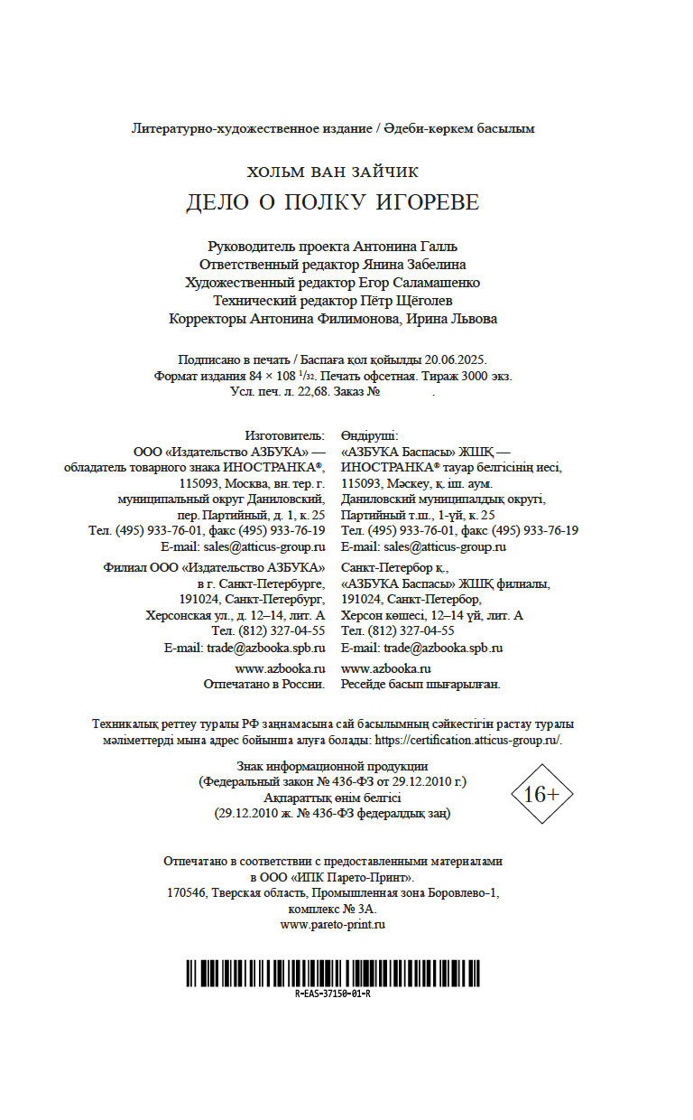 | Изготовитель | ООО "Издательство "Иностранка". 109017, РФ, г. Москва, ул. Пятницкая, 41 |