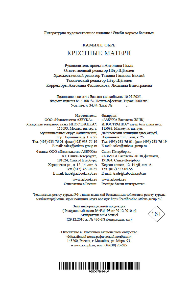 | Изготовитель | ООО "Издательство "Иностранка". 109017, РФ, г. Москва, ул. Пятницкая, 41 |