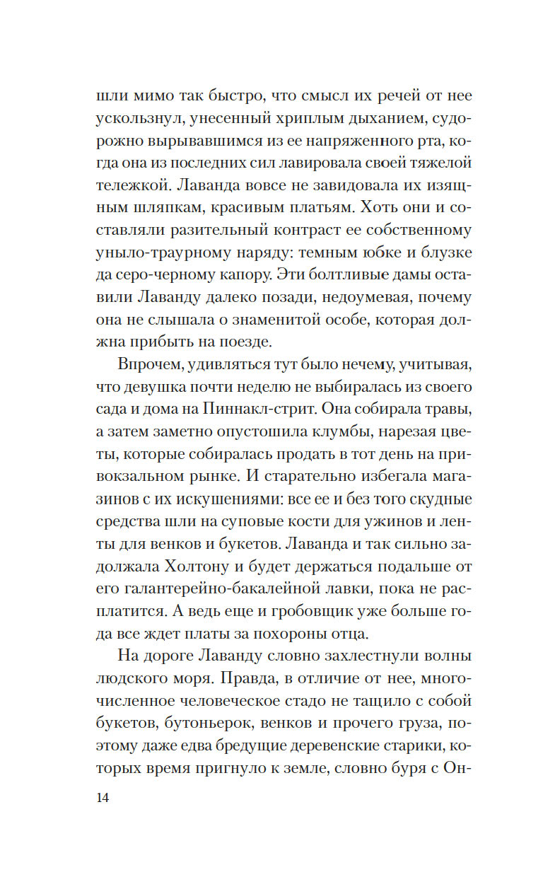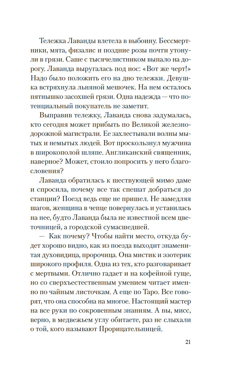 Двадцативосьмилетняя Лаванда Фитч живет в маленьком канадском городке и после смерти родителей едва сводит концы с концами. Девушка зарабатывает на жизнь, выращивая цветы и продавая букеты и бутоньерки на железнодорожной станции. Но вот однажды с поезда сходит странная пара – знаменитый медиум Аллегра Траут прибыла на публичную демонстрацию своих спиритических способностей в сопровождении помощника Роберта. Прорицательница одаривает всех знаками внимания, но на Лаванду смотрит неприветливо, хотя ее спутник, наоборот, активно ухаживает за девушкой. Как новые знакомые повлияют на судьбу Лаванды? Удастся ли девушке обрести личное счастье? И какую роль в этой истории сыграет арфа ее покойной матери, до сих пор стоящая у Лаванды в гостиной?