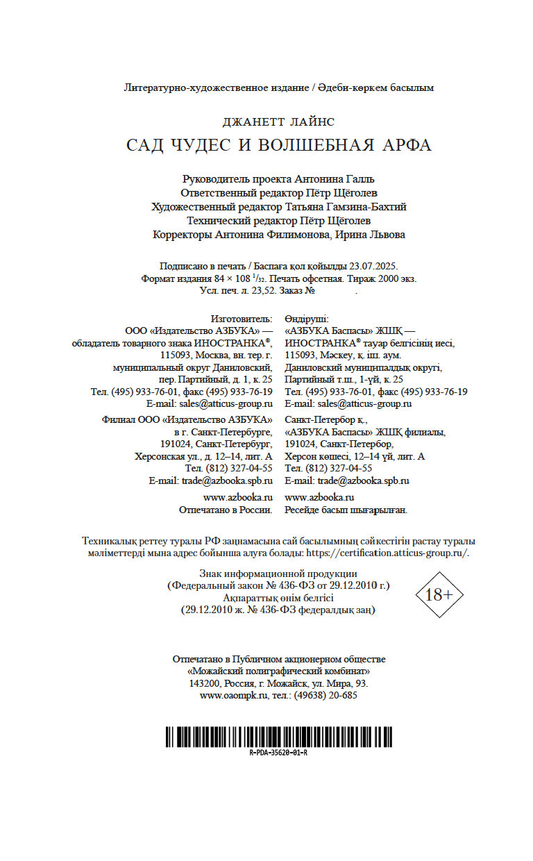 | Изготовитель | ООО "Издательство "Иностранка". 109017, РФ, г. Москва, ул. Пятницкая, 41 |