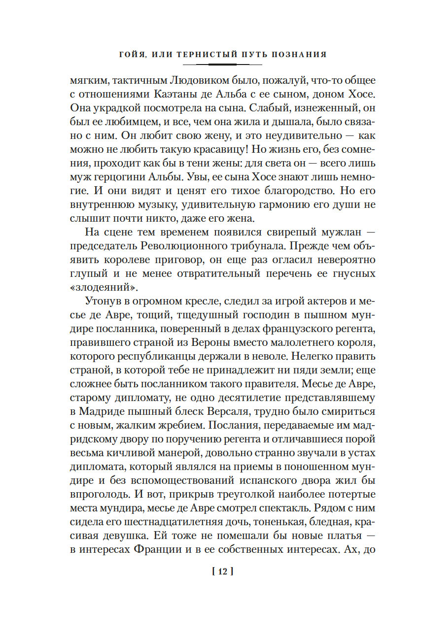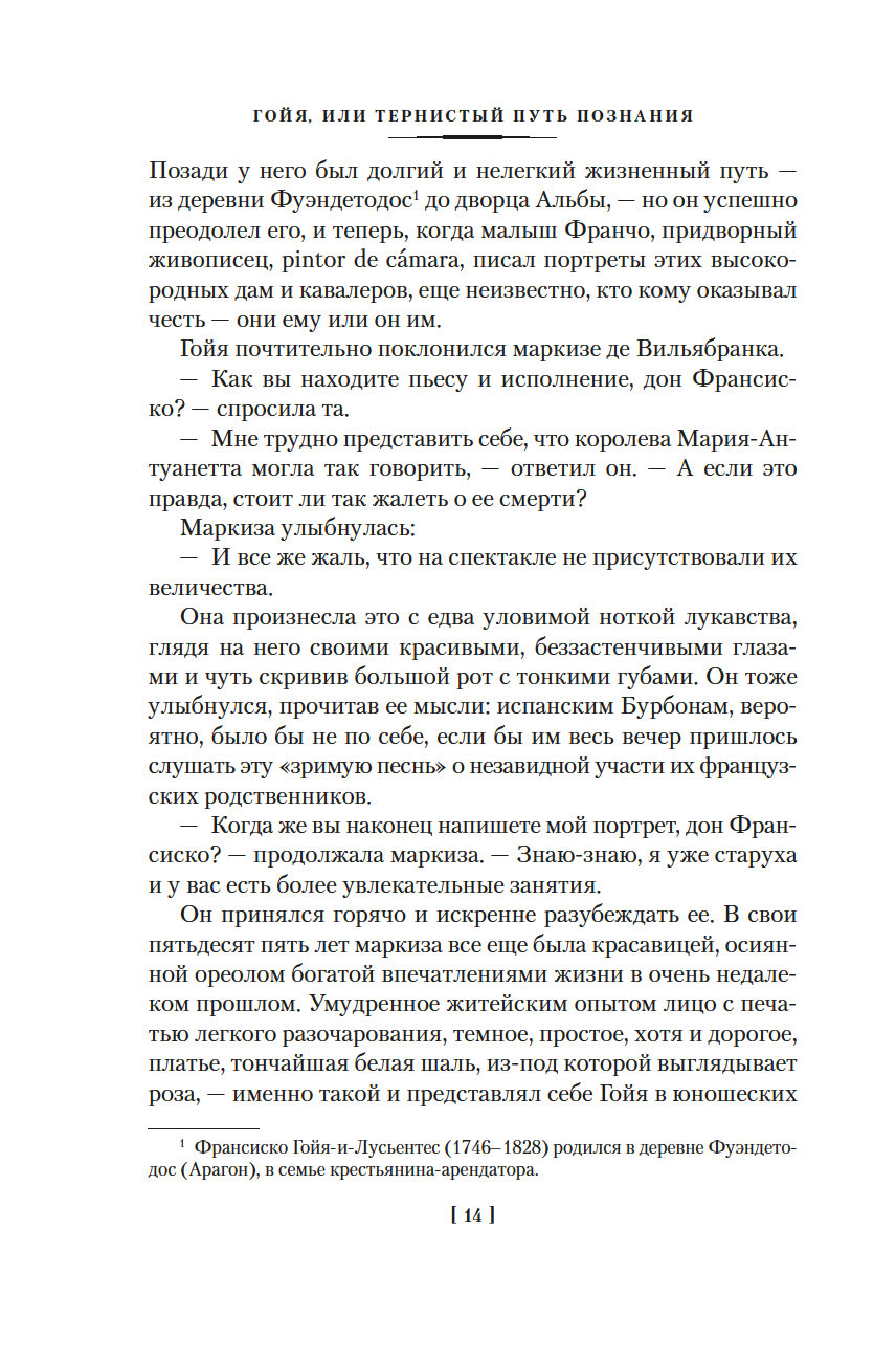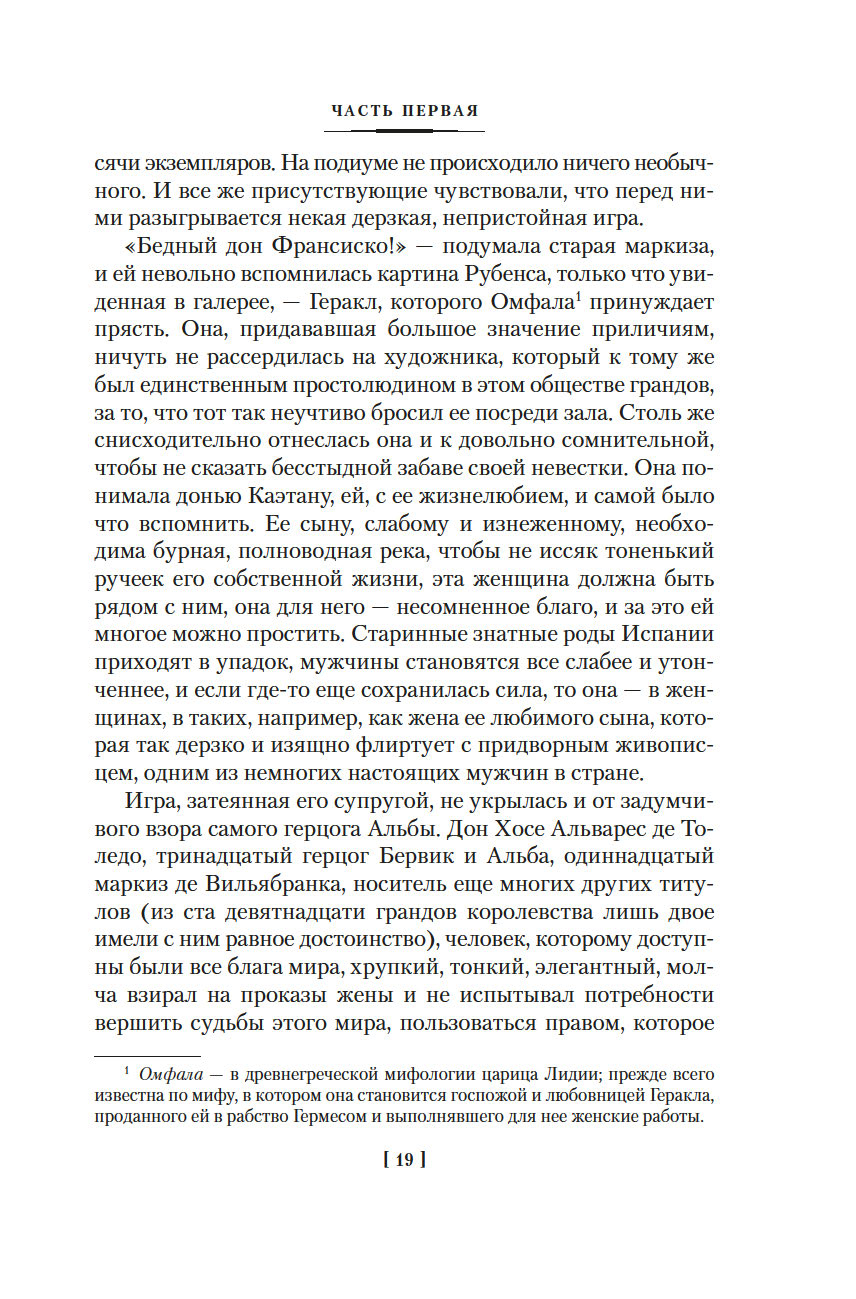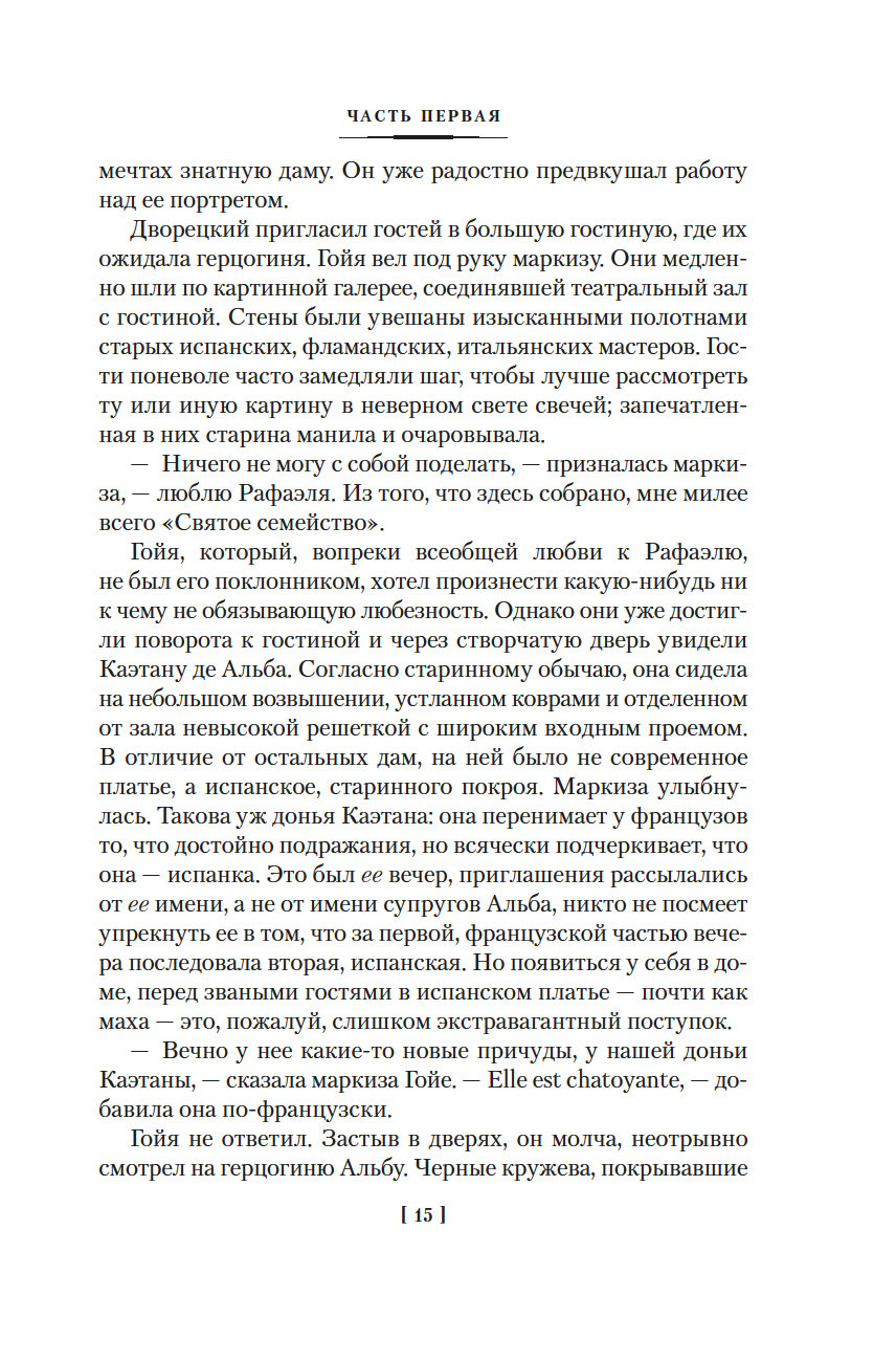 К 1793 году живописец Франсиско Гойя достиг небывалого успеха. Позади был долгий и нелегкий путь – от порога родного дома в деревне Фуэндетодос во дворец Альбы и даже в королевский дворец, – но Гойя успешно преодолел его. И теперь, когда он, прежде просто малыш Франчо, а ныне придворный живописец, pintor de cámara, пишет портреты этих высокородных дам и кавалеров, еще неизвестно, кто кому оказывает честь, – они ему или он им…