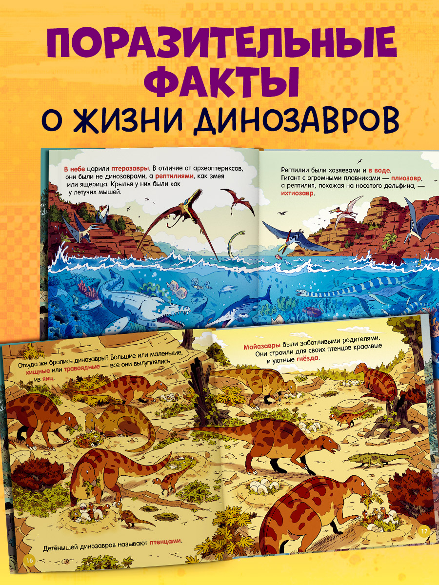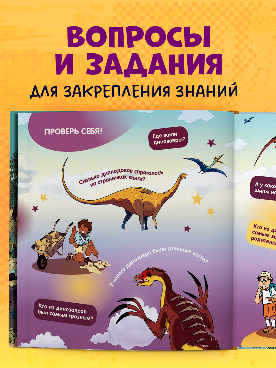 Невероятно реалистичные иллюстрации, увлекательный рассказ о жизни загадочных динозавров и профессии палеонтолога, вопросы и задания на проверку знаний в книжке для малышей "Динозавры" есть все, чтобы заинтересовать ребенка. А комфортный объем текста и крупный шрифт делают книгу идеальной для первого чтения.