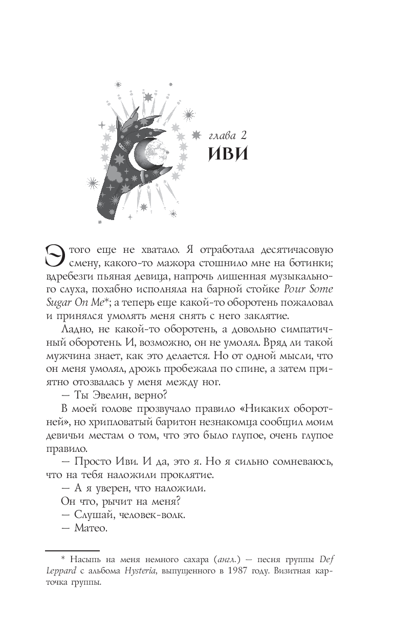 Иви Савуа всегда следовала правилам ковена: никаких оборотней! Они известны своей способностью создавать проблемы. Когда Матео врывается в ее бар и нападает на клиента, Иви готова выставить незваного гостя за дверь. Но видя отчаяние в его глазах, ведьма решила сделать исключение из правил.
