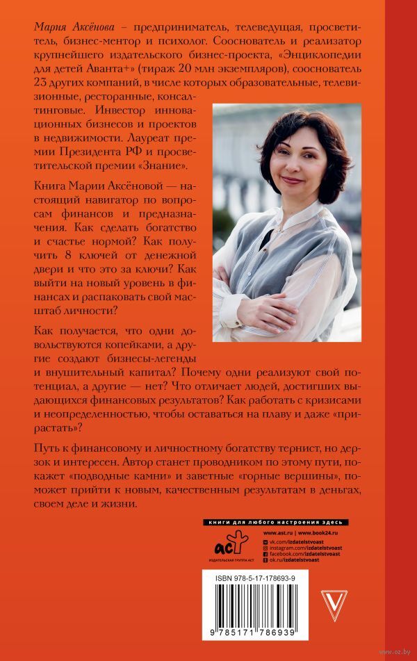Книга Марии Аксеновой – настоящий навигатор по вопросам финансов и предназначения. Как сделать богатство и счастье нормой? Как получить 8 ключей от денежной двери и что это за ключи? Как выйти на новый уровень в финансах и распаковать свой масштаб личности?