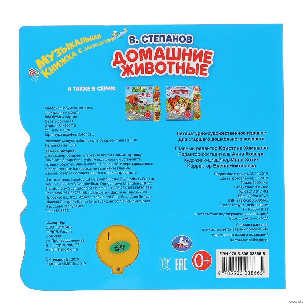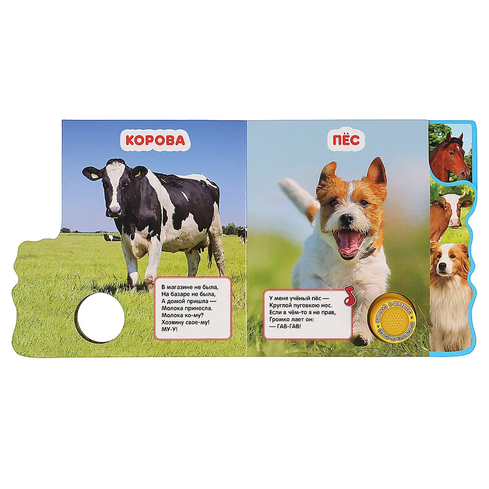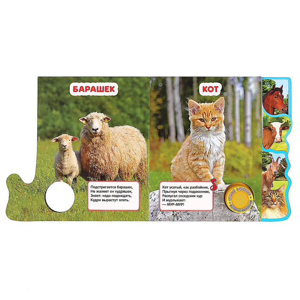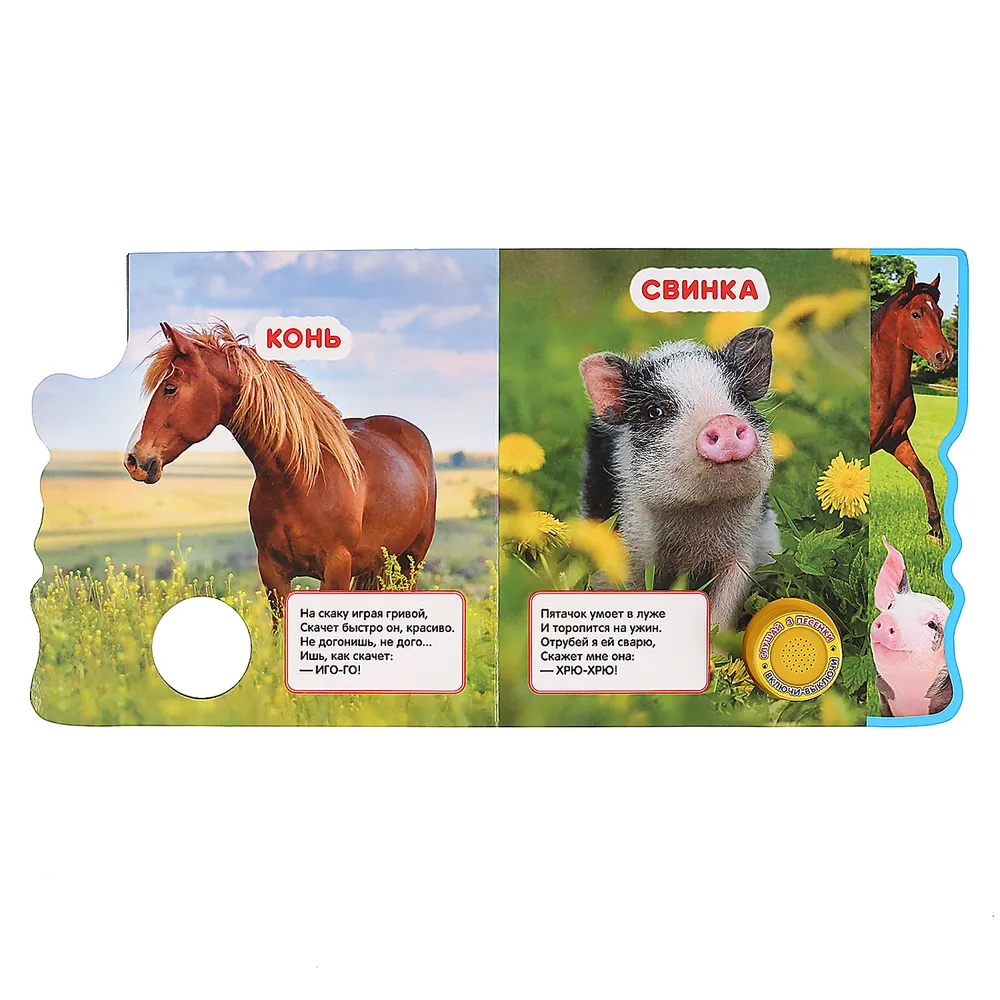 Ребёнок с удовольствием будет листать плотные страницы с закладками, рассматривать яркие картинки, читать вместе с родителями про стихи про животных, а также нажимать на кнопку и слушать весёлые песенки. Малыш легко освоит включение звука: по нажатию на кнопку включится первая песенка, при втором нажатии выключится и т.д. Благодаря компактному формату книгу удобно взять с собой в дорогу.