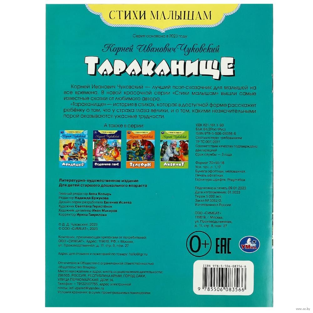 Книга-брошюра "К. И. Чуковский. Тараканище" из серии "Стихи малышам" – отличный подарок для ребёнка: