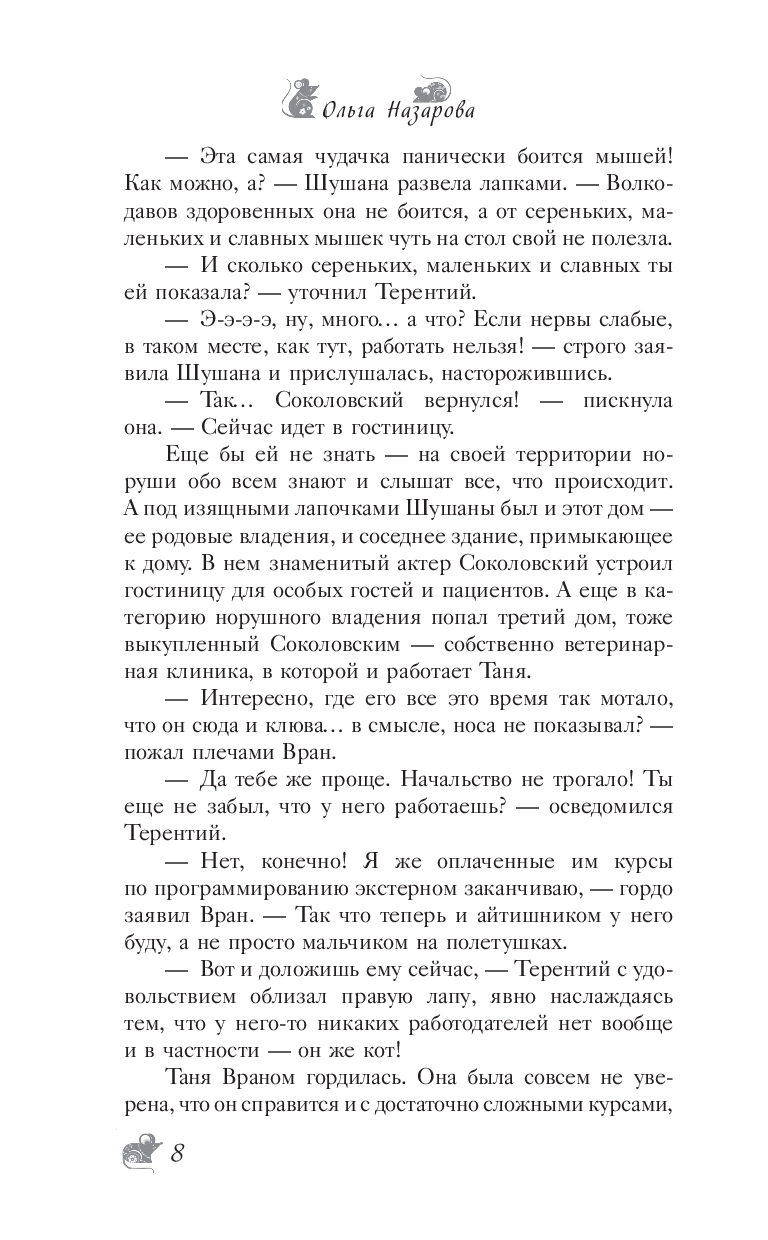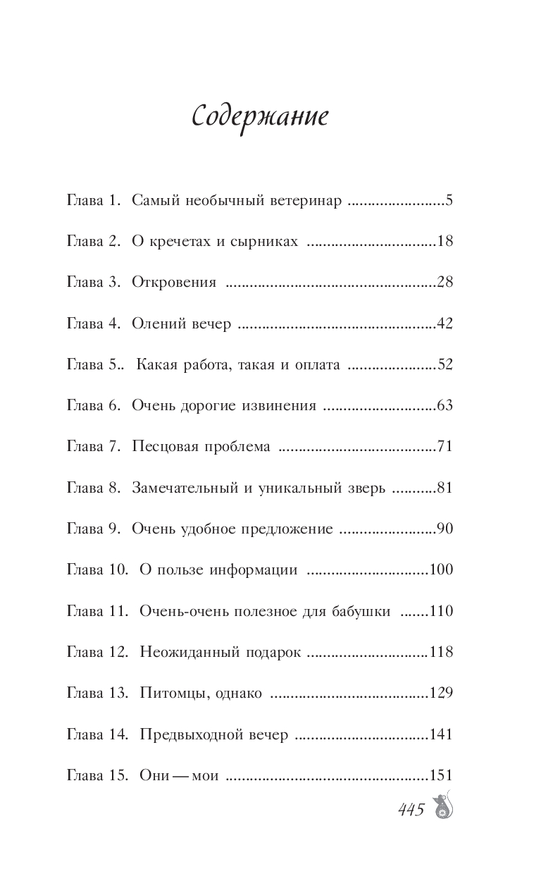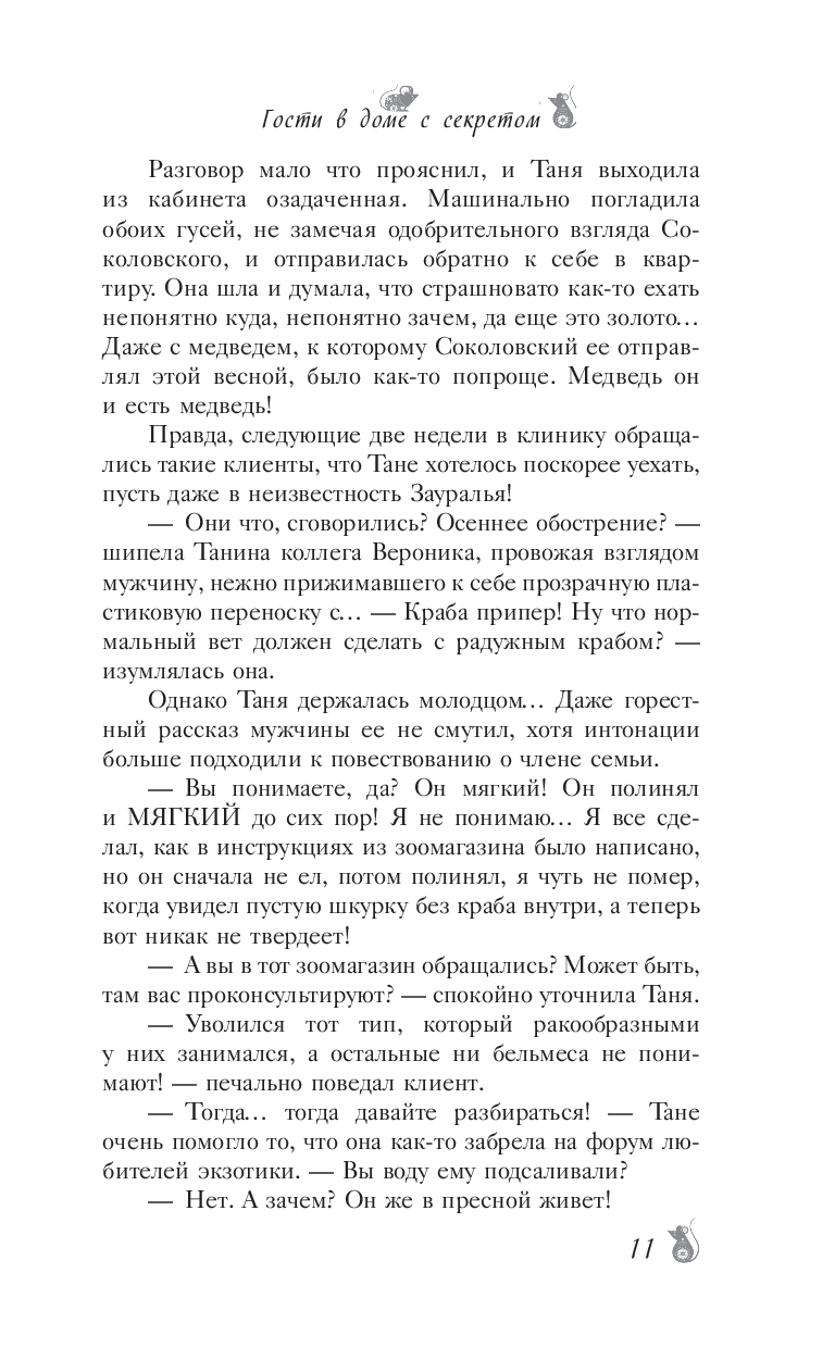 Животных лечить в принципе нелегко, а необычных и подавно! Но какими бы они ни были, всех оказавшихся рядом с Татьяной объединяет одно – им нужна помощь. Иногда – помощь ветеринара, а иногда – друга. Да и самой Татьяне не помешает дружеская поддержка, когда тип со сложным характером оказывается двухметровым полозом, олени одаривают золотом, лисы могут показываться в людском виде, а росомаха под наркозом дает концерт с обширным репертуаром эстрадных песен в оригинальной интерпретации. Впрочем, общение с этими созданиями подчас проще, чем общение с родственниками.