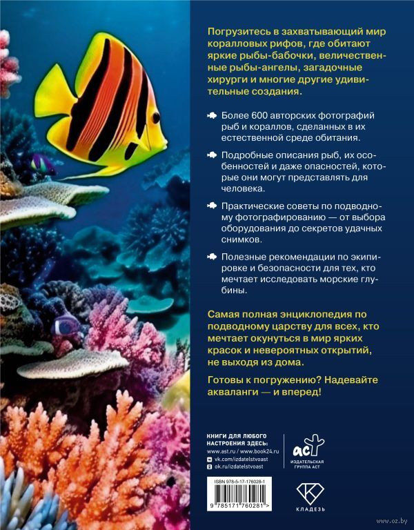 Самая полная энциклопедия по подводному царству для всех, кто мечтает окунуться в мир ярких красок и невероятных открытий, не выходя из дома.