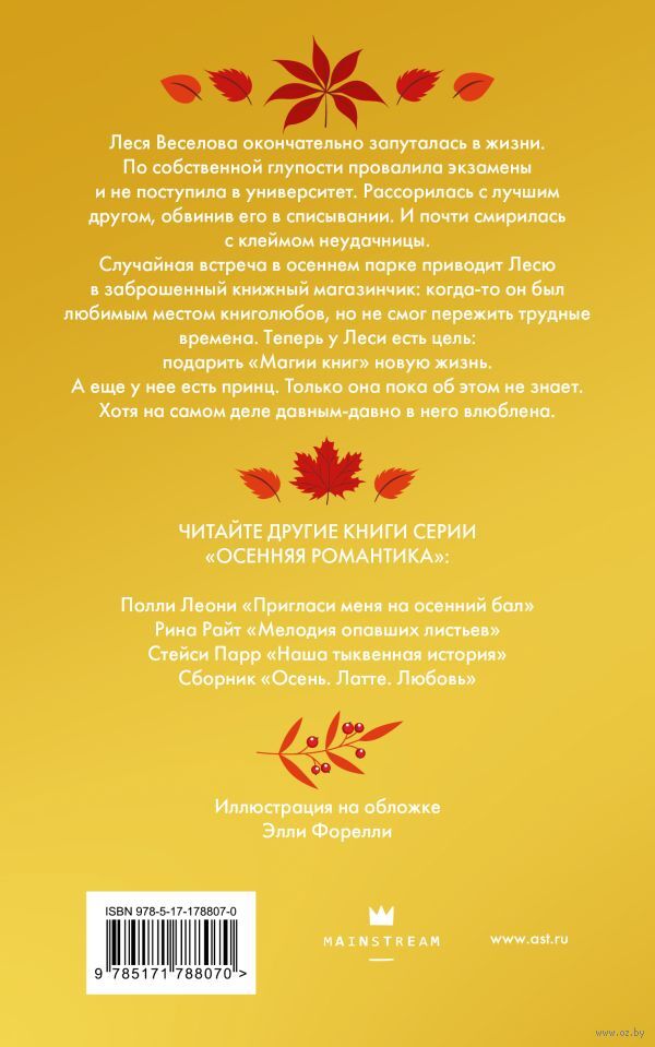 Случайная встреча в осеннем парке приводит Лесю в заброшенный книжный магазинчик: когда-то он был любимым местом книголюбов, но не смог пережить трудные времена. Теперь у Леси есть цель: подарить "Магии книг" новую жизнь.