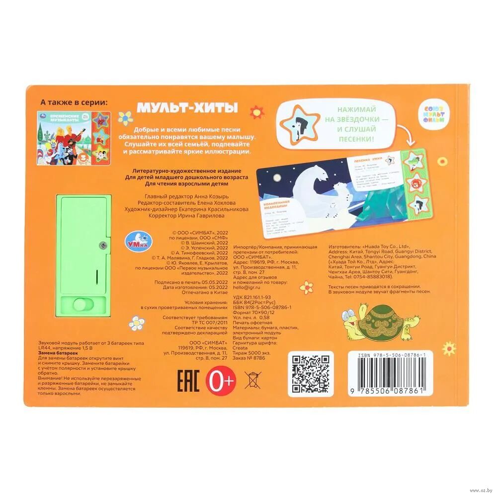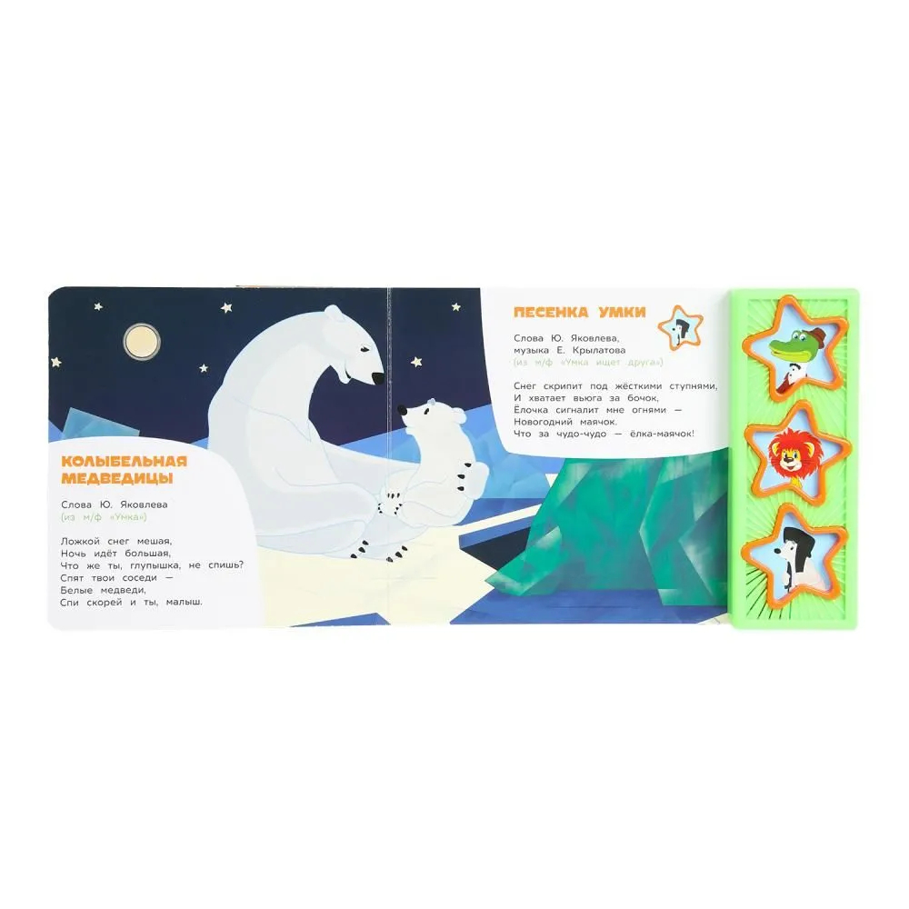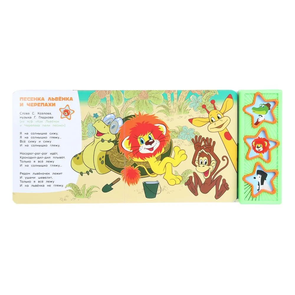 Ребёнок с удовольствием будет листать плотные страницы, рассматривать яркие картинки и, конечно, нажимать на кнопки и слушать весёлые песенки из известных мультфильмов. Малыш легко освоит включение звука: по нажатию на кнопку звук включится, при втором нажатии выключится. Книжка сделана из плотного картона, поэтому родители могут не опасаться за её сохранность. Благодаря компактному формату её удобно брать с собой в путешествия.