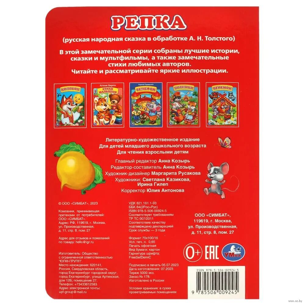 Вашему ребенку очень понравится и сама сказка, и яркие картинки. Читайте с воодушевлением и удовольствием. Книга рассчитана и на самых маленьких – малыш не поранит ручки о плотные странички, образы на иллюстрациях ему будет просто узнать и понять.