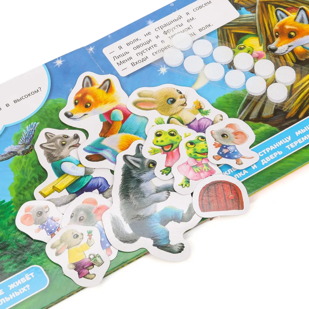 Книга с липучками поможет малышу провести время с пользой, развить фантазию и воспитать усидчивость. Ребёнок вспомнит сюжет известной сказки, научится выделять один объект из множества других и находить для него место на странице этого удивительного издания. Оригинальный крепёж элементов на липучках делает игру занимательнее и интереснее. Получение информации в такой игровой форме позволит быстрее и эффективнее усвоить новые знания, а также потренировать мелкую моторику.