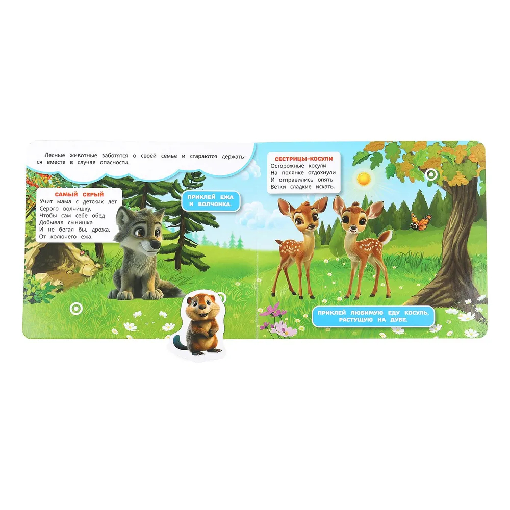 Книга с липучками поможет малышу провести время с пользой, развить фантазию и воспитать усидчивость. Ребёнок с удовольствием послушает стихи про животных, а также в процессе занятий с книгой научится выделять один объект из множества других и находить для него место на странице этого удивительного издания. Оригинальный крепёж элементов на липучках делает игру занимательнее и интереснее. Получение информации в такой игровой форме позволит быстрее и эффективнее усвоить новые знания, а также потренировать мелкую моторику.