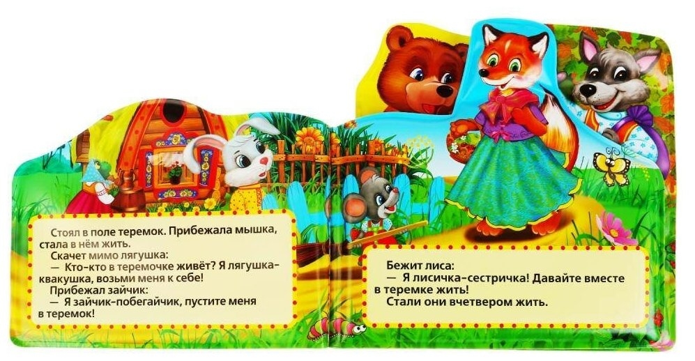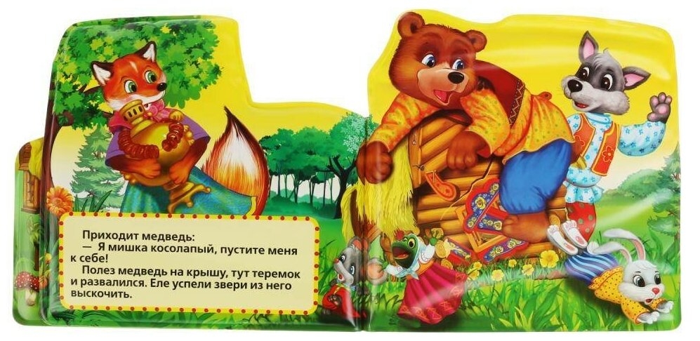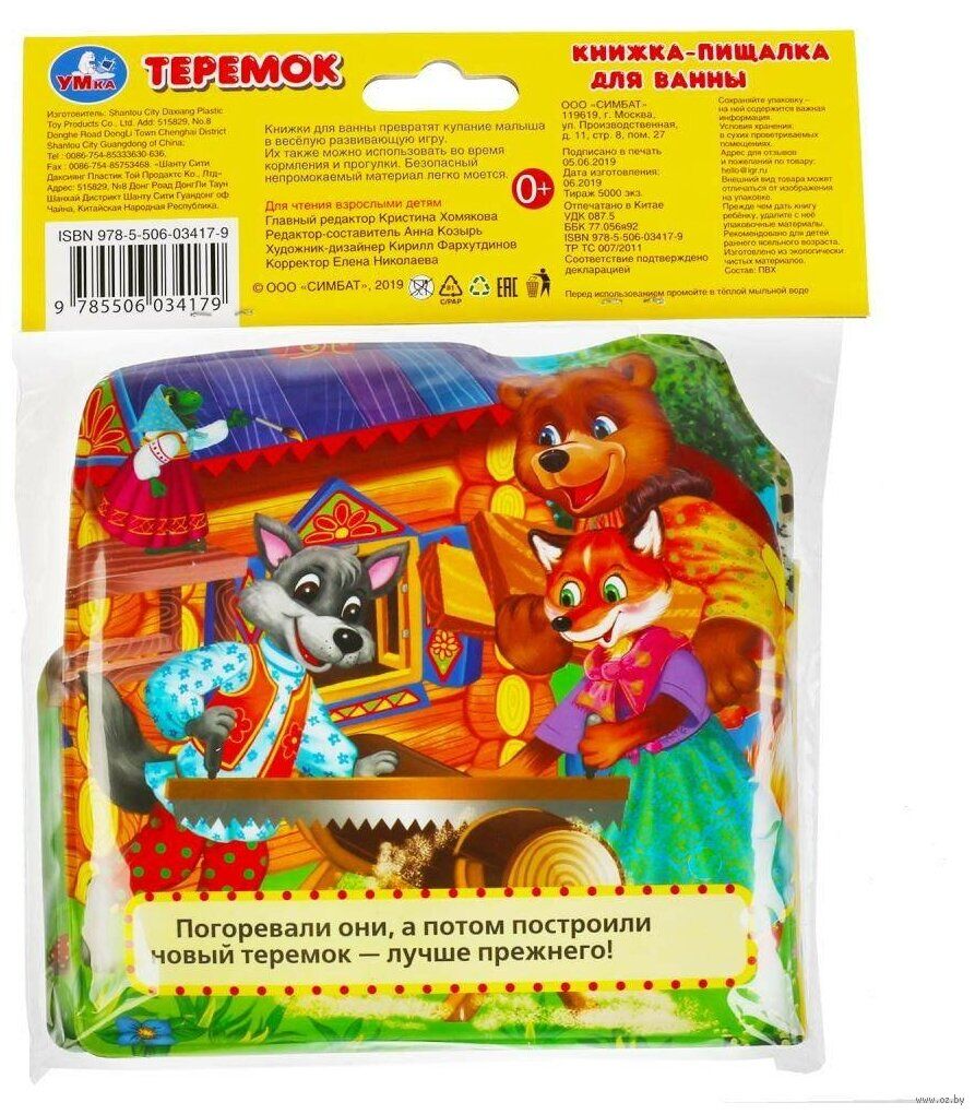 Книга с красочными изображениями персонажей известной русской народной сказки обязательно заинтересует малыша. Кроме того, она сможет развеселить маленького непоседу тем, что при нажатии на страницу издаёт забавный пищащий звук. С такой игрушкой ребёнку будет весело и интересно принимать ванну, а также её можно использовать во время кормления или прогулок: непромокаемый материал легко моется.