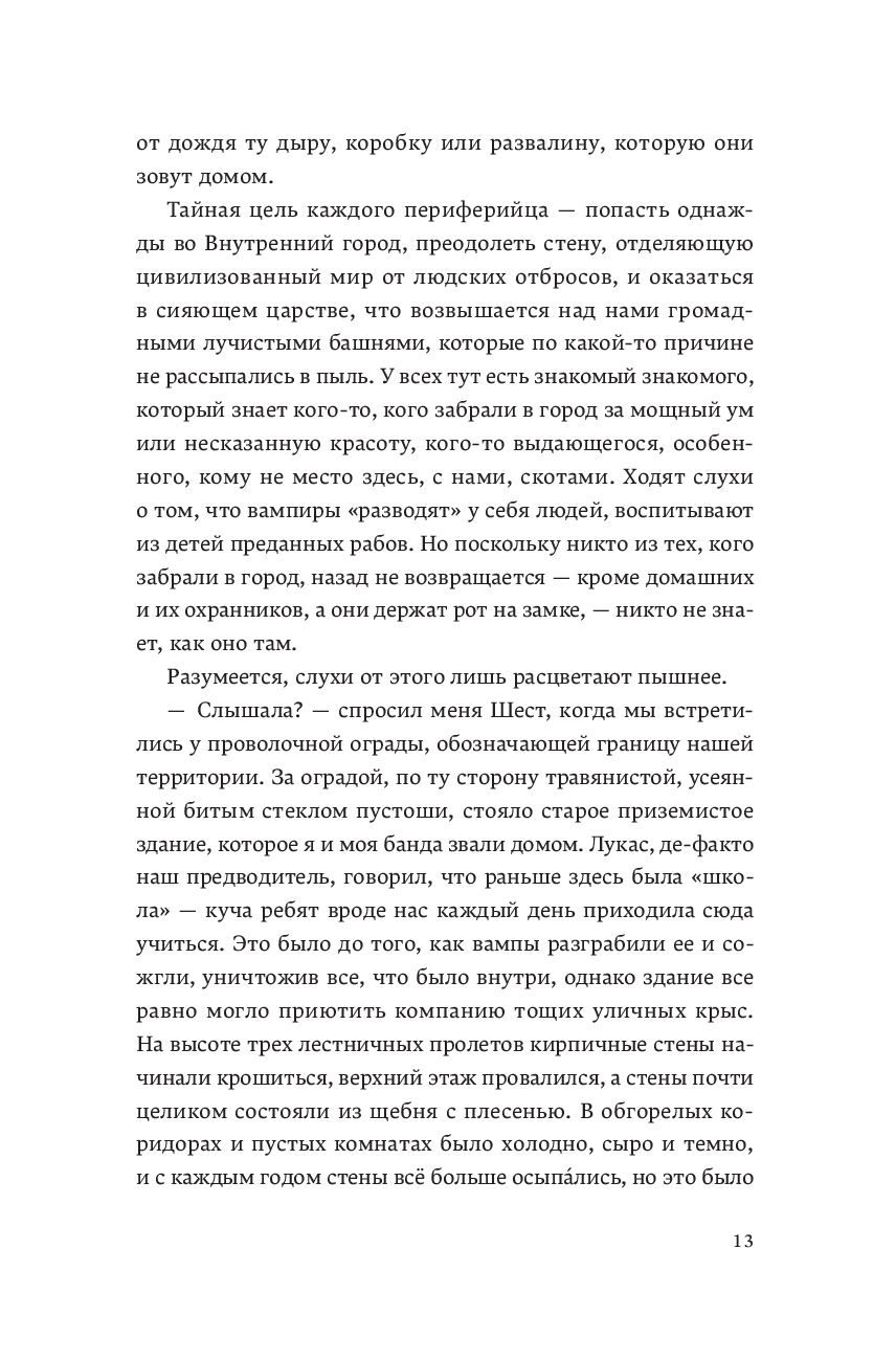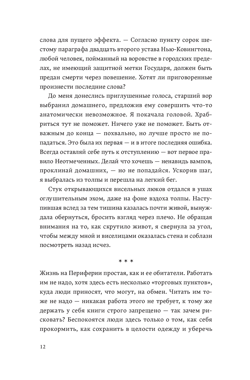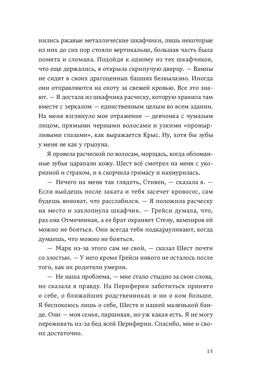 Неотмеченные влачат жалкое существование на Периферии, рыская в поисках пропитания от рассвета до заката. Потому что ночь – время монстров. Очередная вылазка за Стену заканчивается для Эллисон и ее банды трагедией. Эллисон умирает, чтобы стать чудовищем – одной из тех, кого ненавидит.