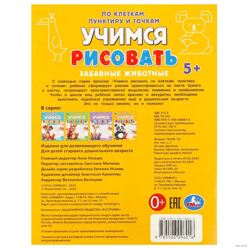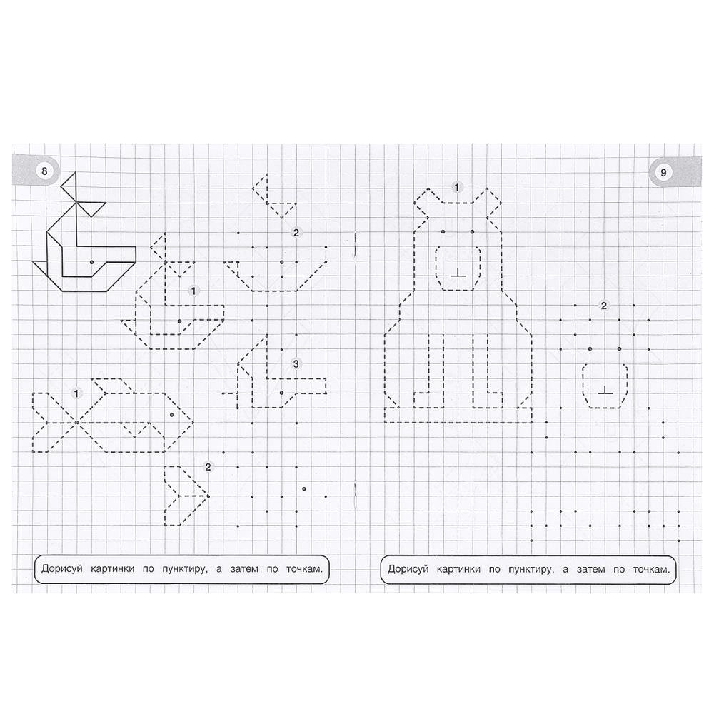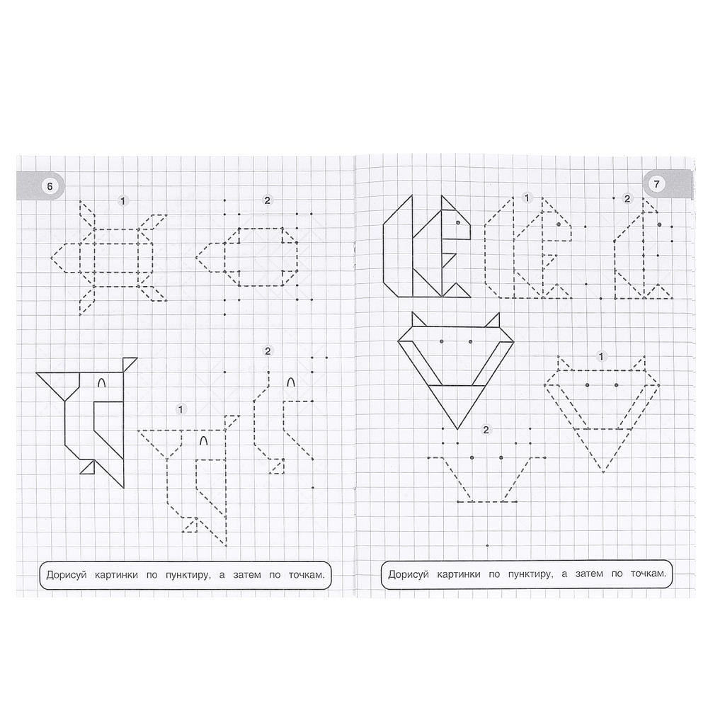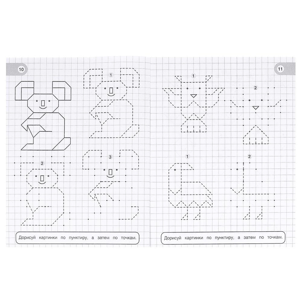 Учимся рисовать по клеткам, пунктиру и точкам. Забавные животные