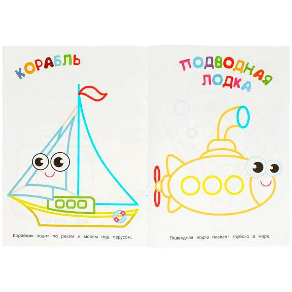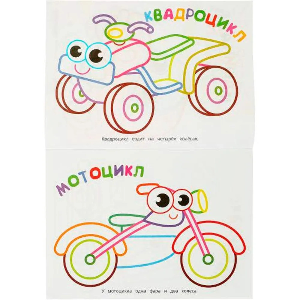 Занимательная раскраска с милыми животными не только развлечёт ребёнка, но и познакомит с разными видами транспортных средств, а также поможет ему научиться раскрашивать картинки, не выходя за границы рисунка. Благодаря цветному контуру малыш без труда сможет подобрать нужный цвет и правильно раскрасить иллюстрации.