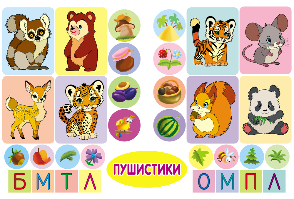 Каждая брошюра состоит из восьми больших контурных рисунков и вставки с тридцатью двумя цветными наклейками. Подобрав и приклеив соответствующие наклейки, ребенок сможет по образцам самостоятельно раскрасить все рисунки и написать их названия.