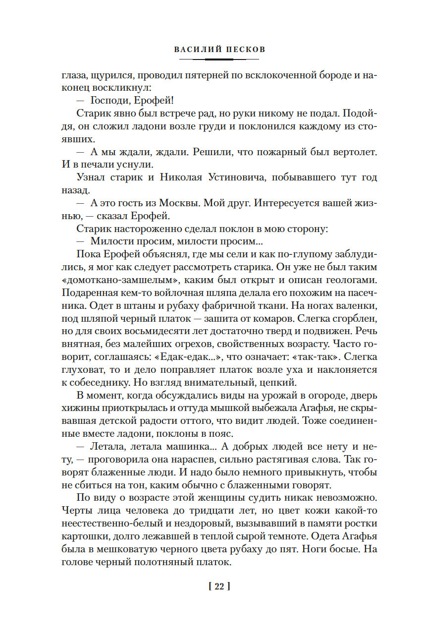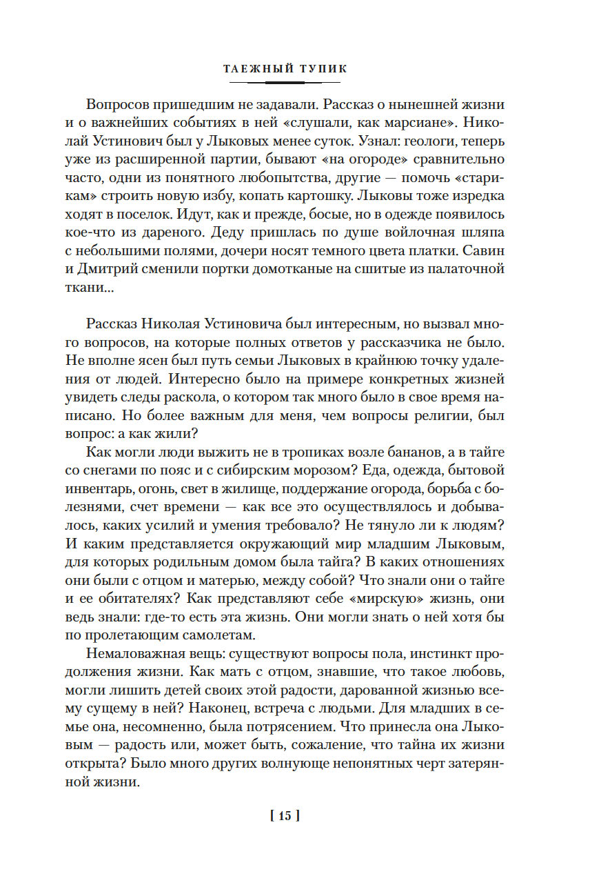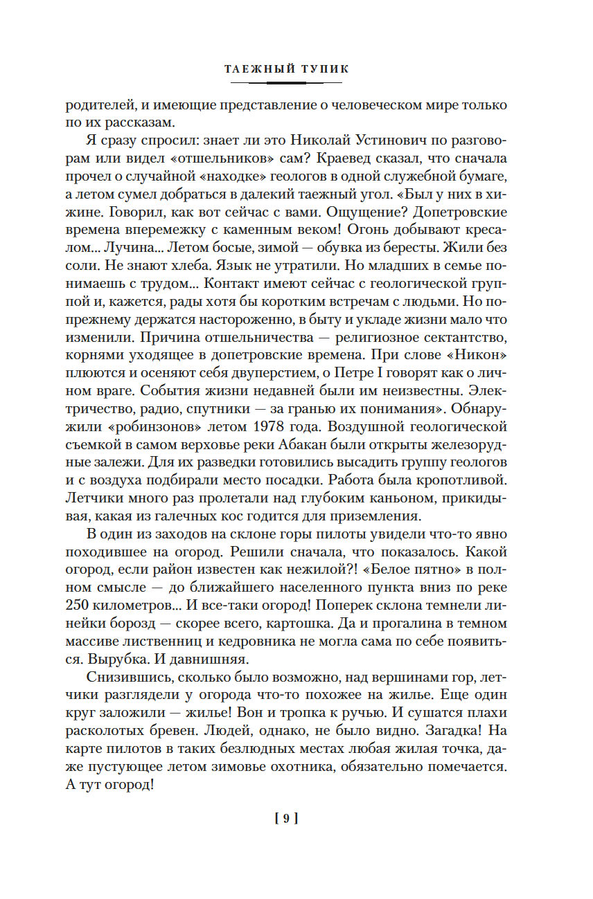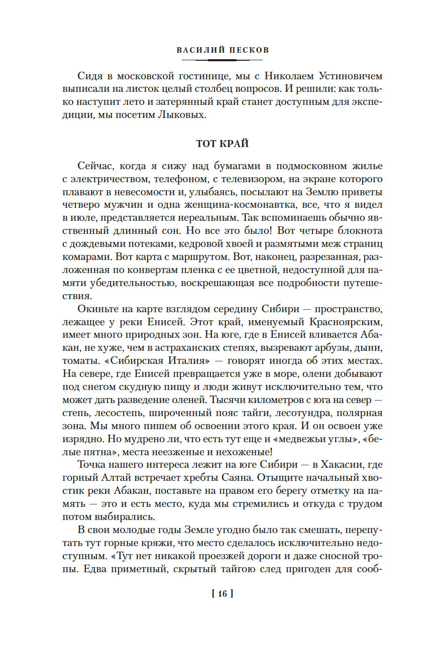 Когда в 1978 году геологи случайно обнаружили на реке Абакан заимку отшельников Лыковых, Василий Михайлович Песков был первым репортером, осветившим эту историю, и с тех пор не оставлял таежных робинзонов своим вниманием, сделавшись летописцем семьи. Его очерки вызвали огромный резонанс в советской прессе и принесли автору мировую известность. Со временем они сложились в документальную повесть "Таежный тупик", удивительная история старообрядцев Лыковых и их младшей дочери Агафьи стала своеобразным документом эпохи, открыв огромный пласт народной истории страны.
