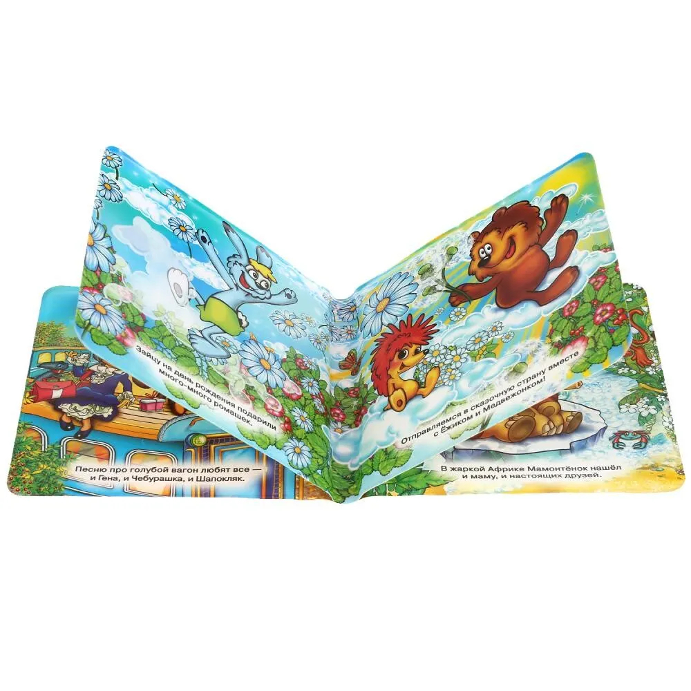 Книга с красочными изображениями героев популярных мультфильмов обязательно заинтересует малыша. С этой книжкой будет весело и интересно играть и принимать ванну. При нажатии на страницу она издаёт забавный пищащий звук, чем развеселит маленького непоседу. Книгу из полимерного материала можно использовать во время кормления малыша или прогулки, так как её потом очень просто очистить от грязи.