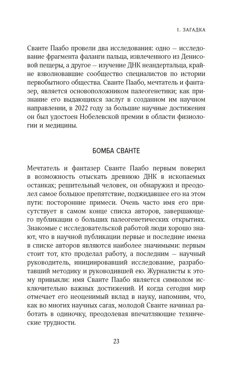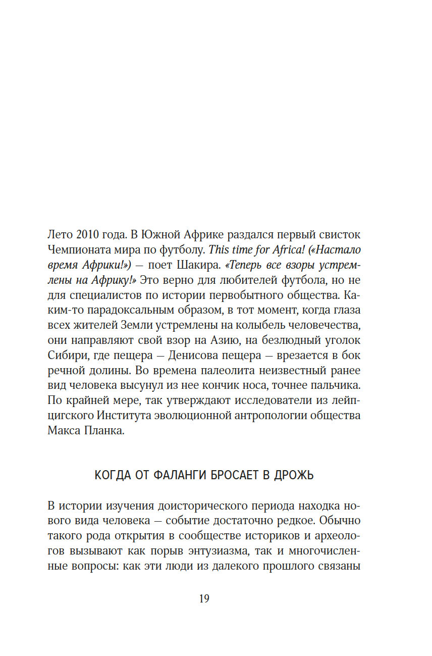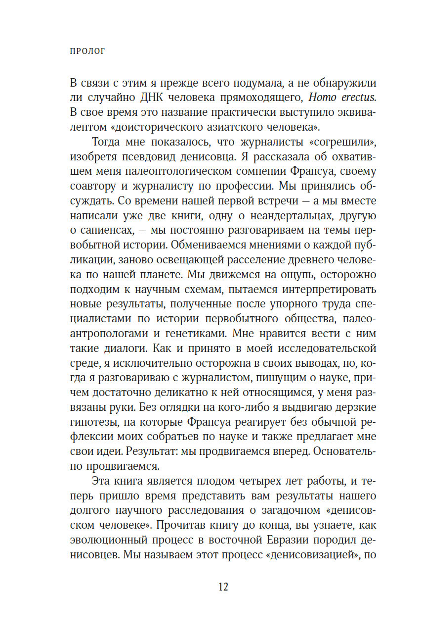 Удивительное открытие 2010 года подарило нам нового предка. На Алтае, в Денисовой пещере была найдена маленькая фаланга пальца девушки. Расшифровка ДНК дала представителя нового, отдельного от Homo Sapiens и неандертальцев, человеческого вида. Авторы книги увлекательно рассказывают, как произошло это удивительное открытие, как жили денисовцы, как выглядели и чем отличались от сапиенсов и неандертальцев; отслеживают следы миграции. Но речь идет не только о денисовцах. Вы узнаете: как ученые впервые обнаружили следы древних людей, и какую революцию это произвело в умах; как выяснилось, что сапиенс был в эволюции не один; как ученые узнали, что у нас у всех есть неандертальские гены; где живут современные потомки древних людей и кто такой таинственный Человек-Дракон.