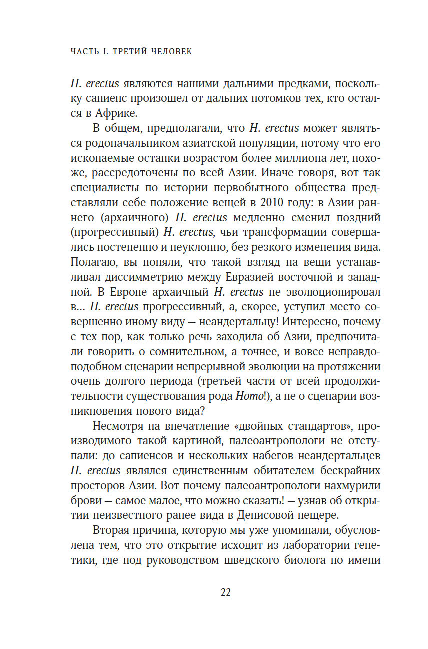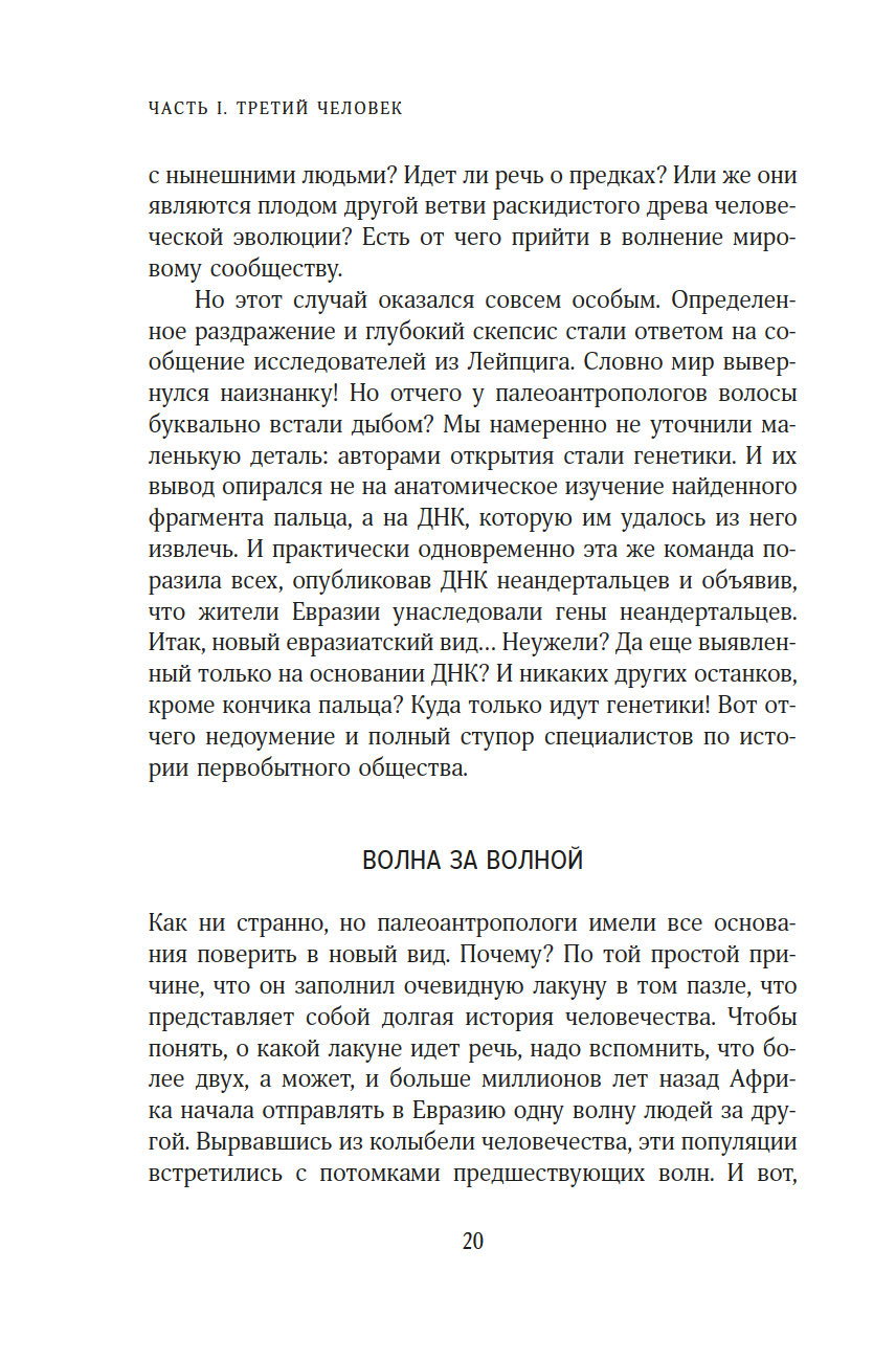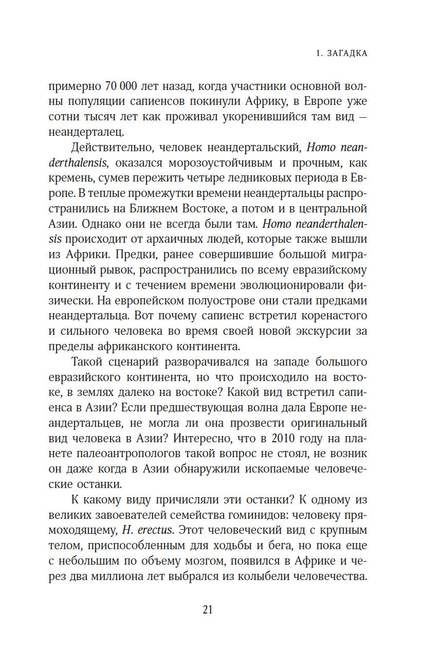 Удивительное открытие 2010 года подарило нам нового предка. На Алтае, в Денисовой пещере была найдена маленькая фаланга пальца девушки. Расшифровка ДНК дала представителя нового, отдельного от Homo Sapiens и неандертальцев, человеческого вида. Авторы книги увлекательно рассказывают, как произошло это удивительное открытие, как жили денисовцы, как выглядели и чем отличались от сапиенсов и неандертальцев; отслеживают следы миграции. Но речь идет не только о денисовцах. Вы узнаете: как ученые впервые обнаружили следы древних людей, и какую революцию это произвело в умах; как выяснилось, что сапиенс был в эволюции не один; как ученые узнали, что у нас у всех есть неандертальские гены; где живут современные потомки древних людей и кто такой таинственный Человек-Дракон.