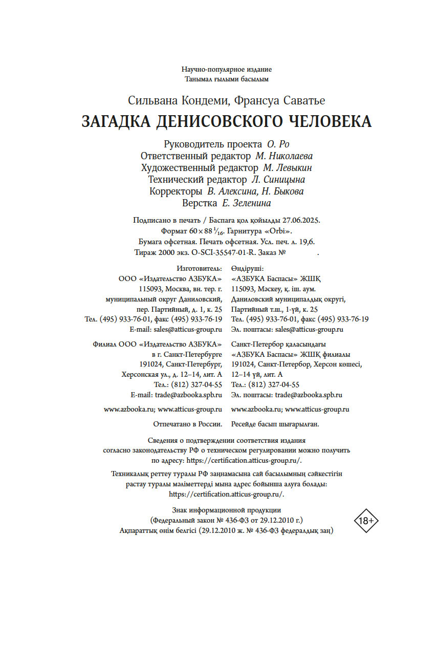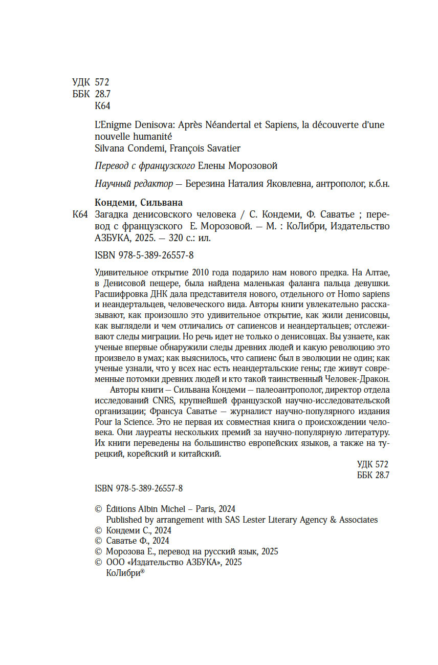 | Название в оригинале | L'Enigme Denisova: Après Néandertal Et Sapiens, La Découverte D'une Nouvelle Humanité |