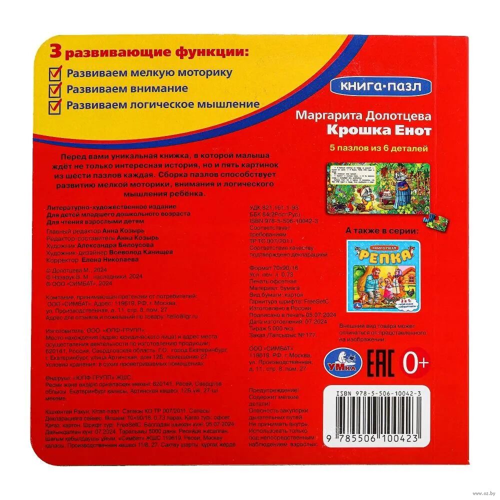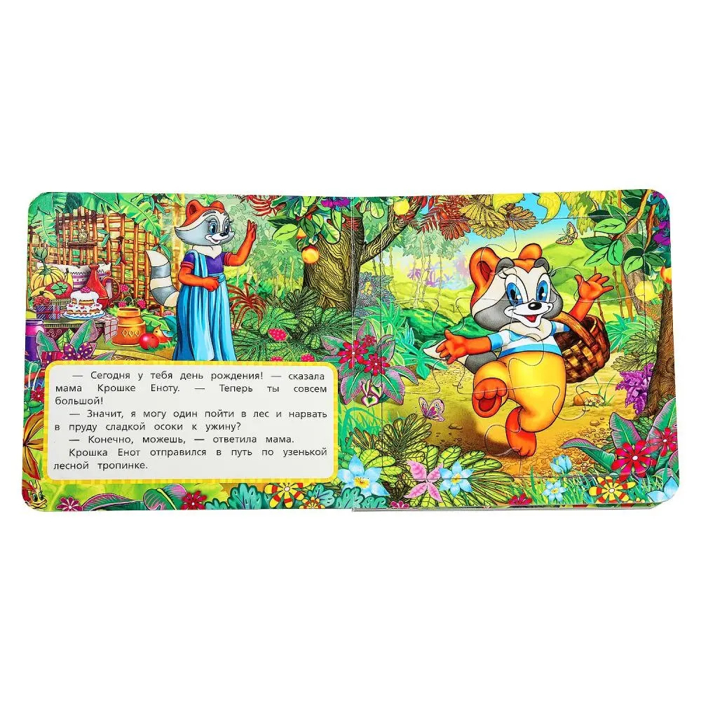Данная книга выполняет сразу 2 функции: это и книга для чтения, и игра в пазлы. На каждом развороте малыша ждёт интересное повествование, а также яркий пазл из 6 деталей с изображением героев любимого мультфильма. Книжка изготовлена из плотного картона, поэтому мамы могут не опасаться, что ребёнок порвёт странички. Благодаря удобному формату книгу можно взять с собой в дорогу.