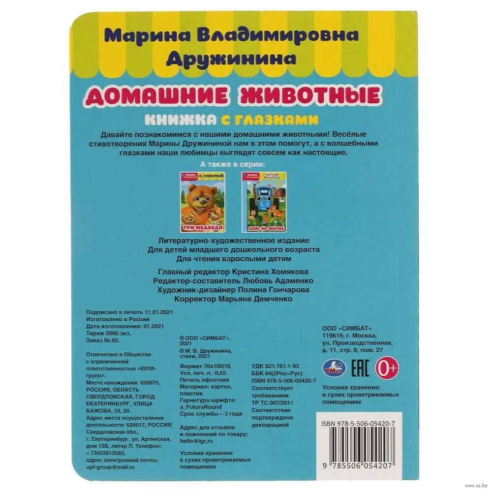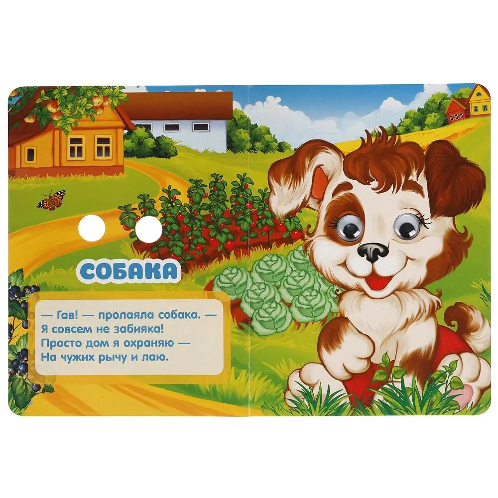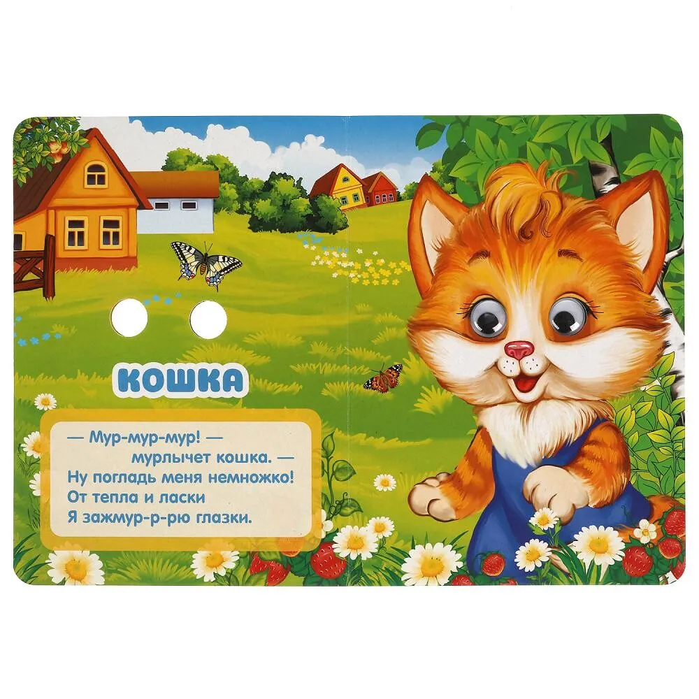 Малыш с удовольствием будет разглядывать большие красочные картинки с забавными подвижными глазками, трогать их пальчиками и слушать интересные стихотворения о животных. Благодаря компактному размеру книгу удобно брать с собой в дорогу.