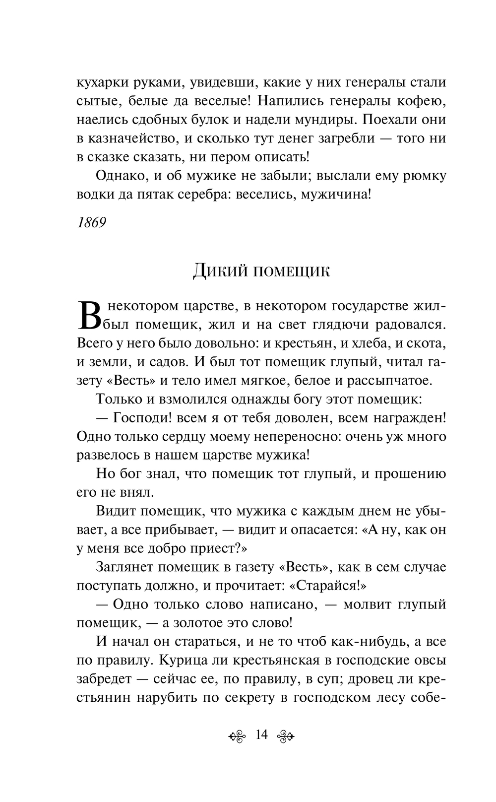 Сатирические сказки Салтыкова-Щедрина (1826-1889) многим знакомы с детства. Реальность и фантастика в них тесно переплетаются, оставляя место для настоящей жизни, изображенной без прикрас, и вымыслу, усиливающему комический эффект. Вот и свирепые и беспощадные правители, вот невежи и глупцы, а вот и народ, который с одной стороны сильный духом, стойкий и трудолюбивый, но с другой – покорный и принимающий удары, смиряющийся со своей тяжелой долей.