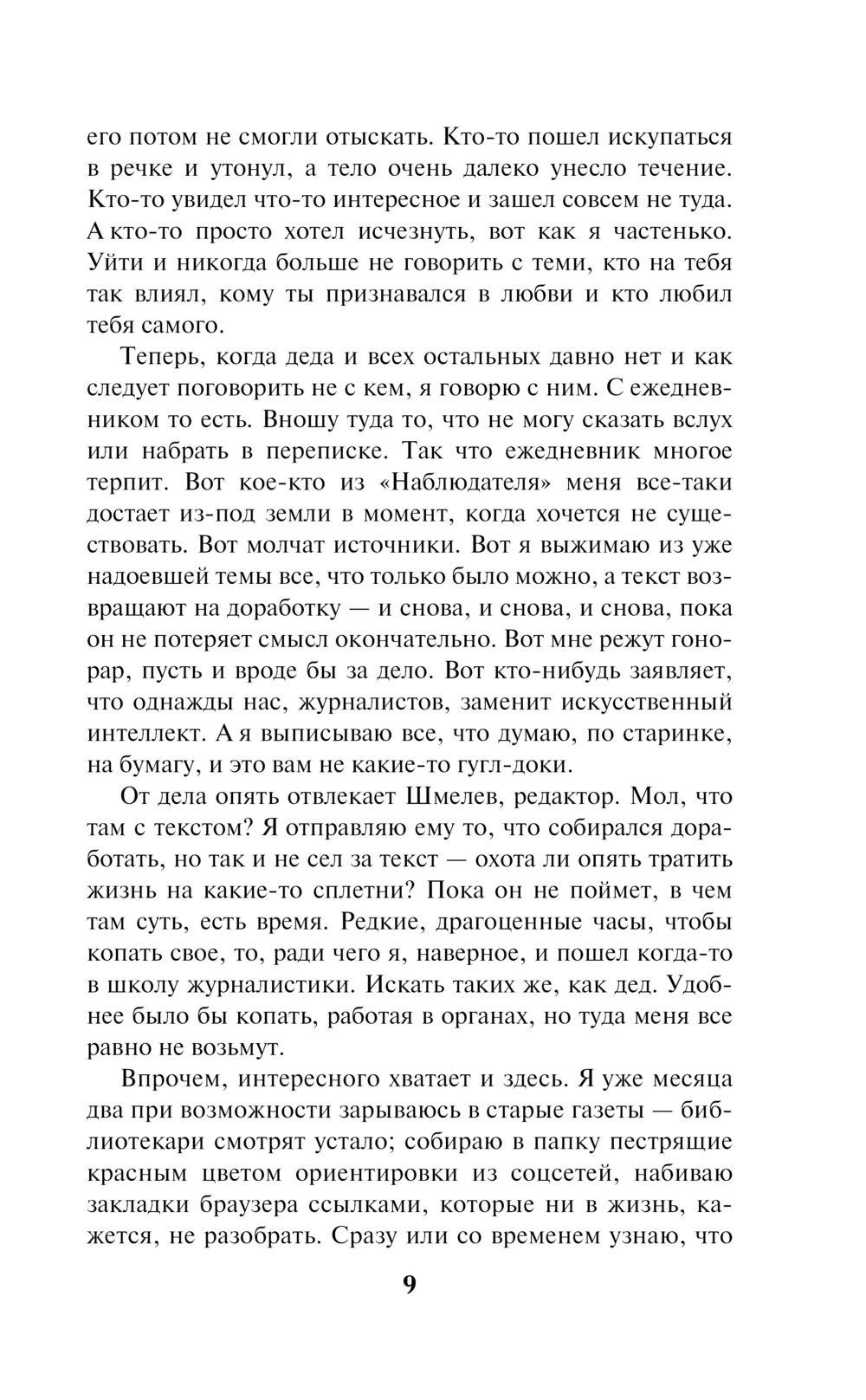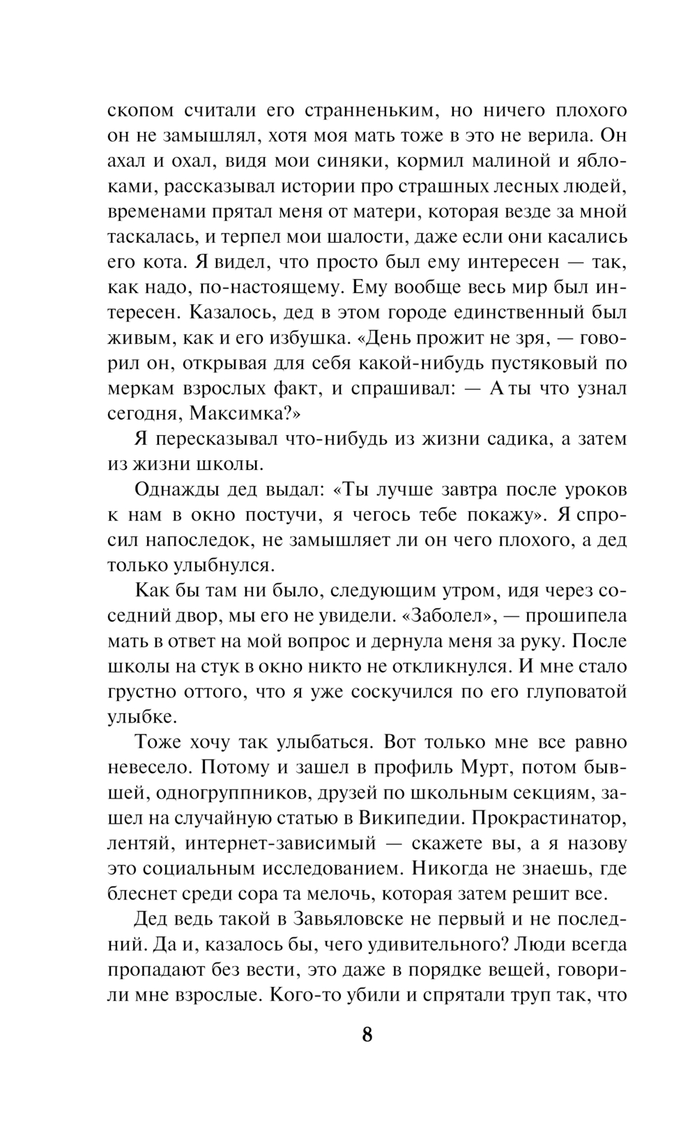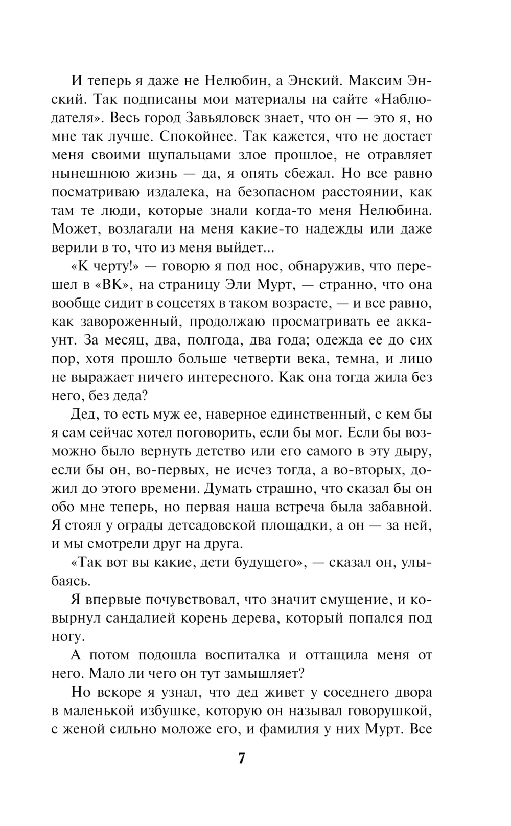 Выгоревший журналист провинциальной газеты Максим Энский видит между исчезновениями жителей Завьяловска связь, что и влечёт его в пыльные библиотечные хранилища, на улицы города, в собственное прошлое – к тому, кто за всем этим стоит. Он за пределами реальности, и вообще… человек ли он?