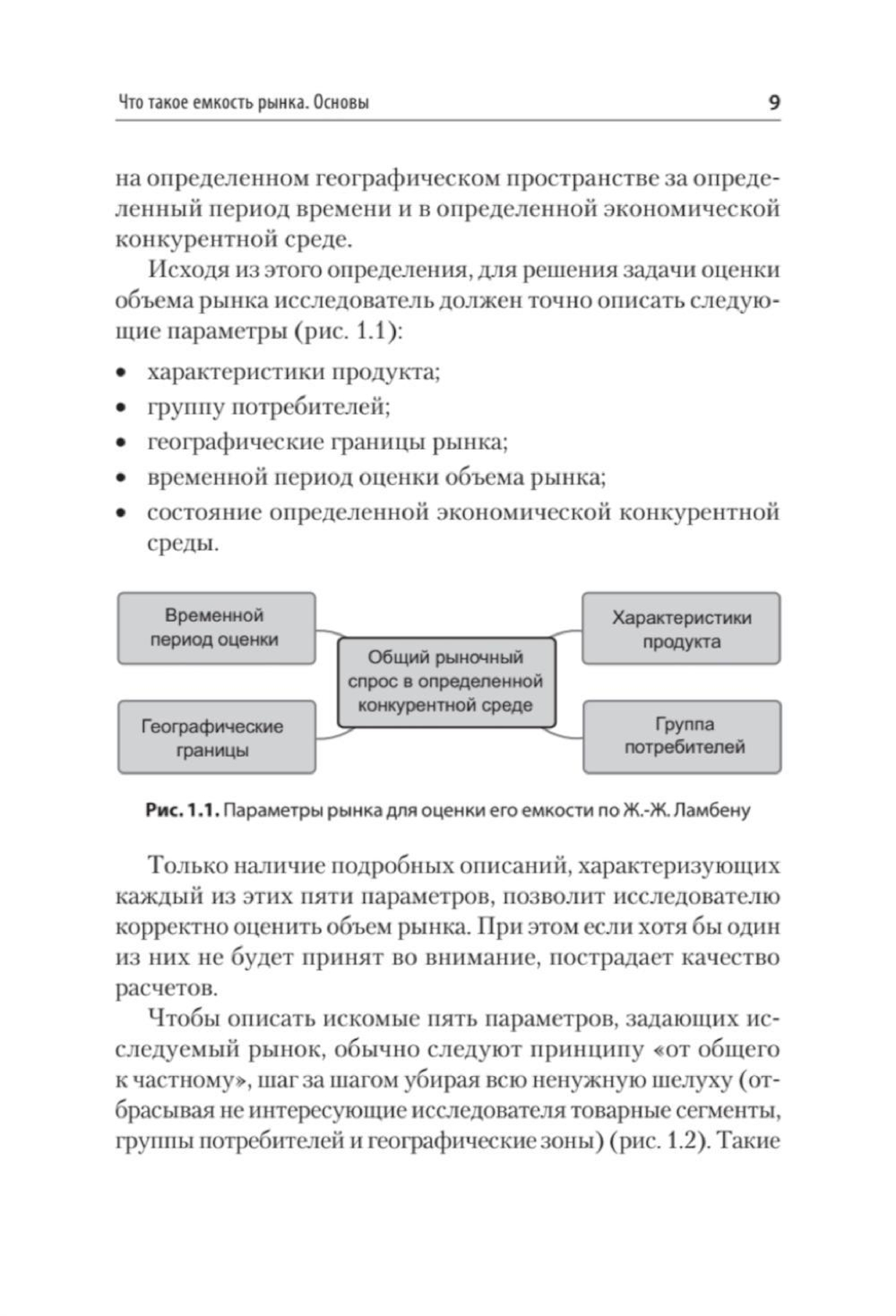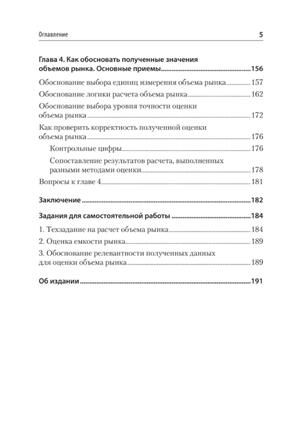 Представлен подробный разбор наиболее популярных методов и приемов оценки емкости рынка с многочисленными примерами их практического применения. Один из разделов посвящён оценке объёма рынка для стартапов и начинающих предпринимателей в терминах TAM-SAM-SOM с детальным описанием алгоритма расчёта ёмкостей этих рынков. Подробно рассмотрена тема обоснования релевантности полученных расчетных значений оценки емкости рынка перед заказчиком. Материалы пособия научат аргументированно обосновывать корректность полученных данных. Специальный акцент сделан на способах увеличения размеров рынка.