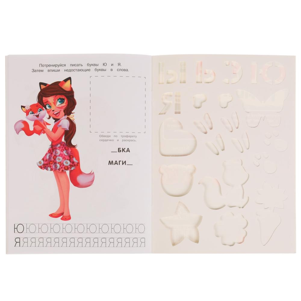 Раскраска с трафаретами "Enchantimals. Лесная магия. Азбука" станет прекрасным подарком для маленькой художницы: