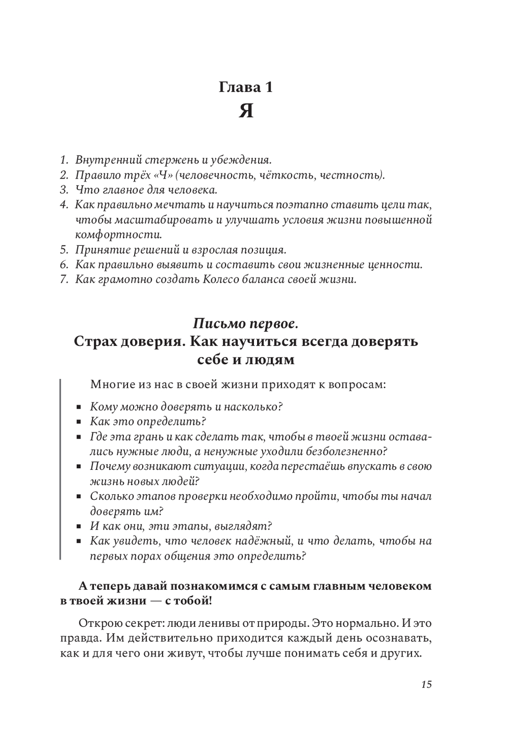 В этой книге тебя ждёт разбор первых одиннадцати сфер жизни: личность, здоровье и внешний вид, личное пространство, досуг и увлечения, личностный и духовно-нравственный рост, бытовые условия, отношения с партнёрами, персональный бренд, финансы и доход.