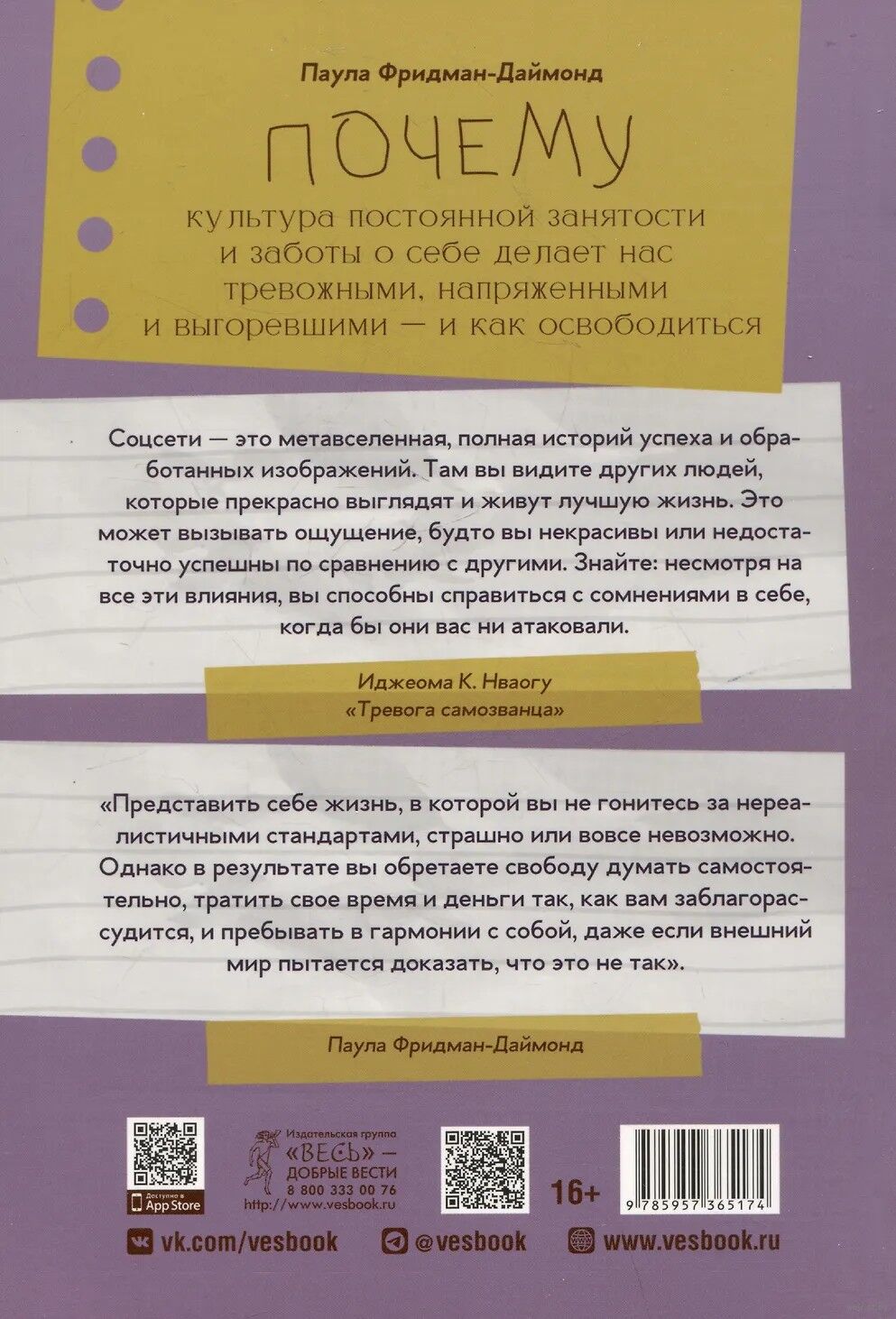 Эта книга предлагает сделать паузу и задуматься: действительно ли стремление к постоянной эффективности и безупречности приведет нас к гармонии и счастью? Усталость – не признак слабости, а важный сигнал, указывающий на необходимость пересмотра приоритетов. Поддерживать образ "успешного человека" на пределе своих сил – невозможно, да и не нужно.