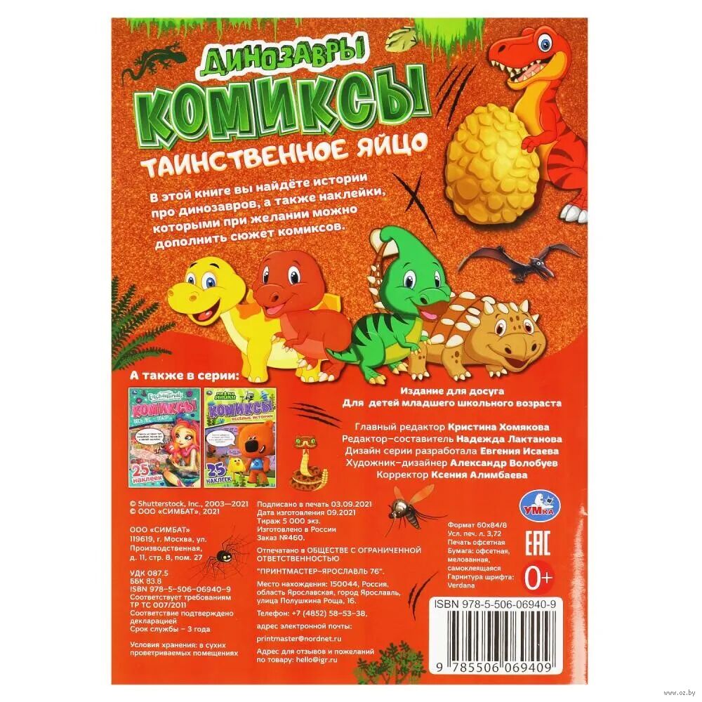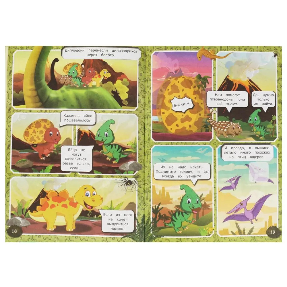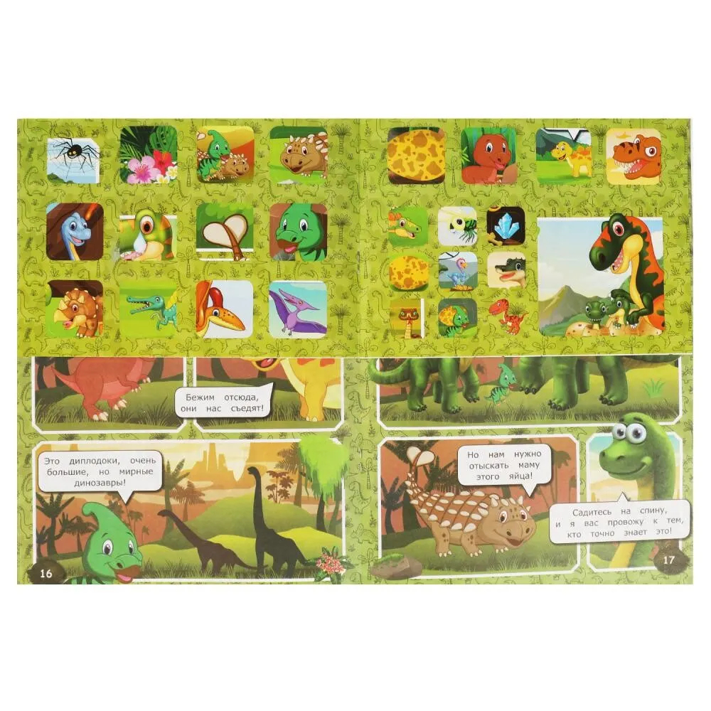 Эти увлекательные комиксы, состоящие практически из одних картинок с минимальным количеством текста, приглашают детей окунуться в удивительный мир, где живут милые и забавные динозавры. Такой формат непременно заинтересует ребенка, он с удовольствием будет читать необыкновенную историю, оформленную яркими иллюстрациями, и наклеивать яркие стикеры.