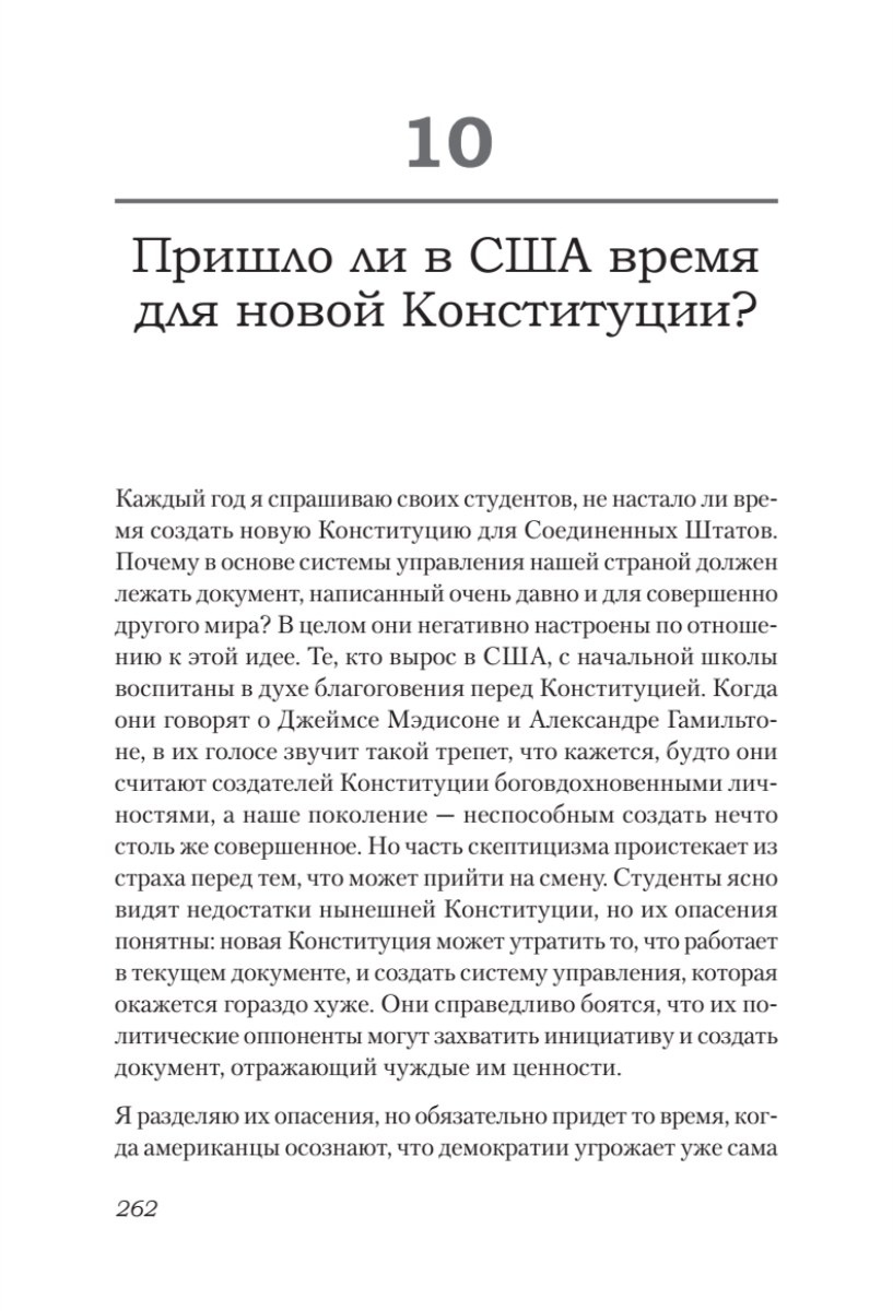 В книге показано, как каждая поправка к Конституции, каждое «улучшение» хваленой системы сдержек и противовесов и избирательного права шаг за шагом вели страну в тупик. Все подтверждено интереснейшими историческими фактами и документами.
