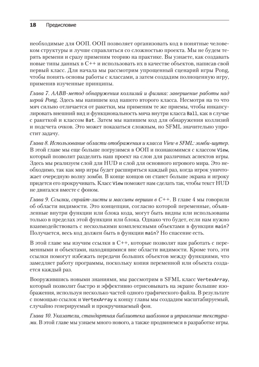 Это издание было адаптировано под Visual Studio 2022, C++20 и библиотеку SFML, оно предлагает уникальный подход: вы не только освоите язык C++ с нуля, но и примените знания на практике, создав четыре игры в разных жанрах.