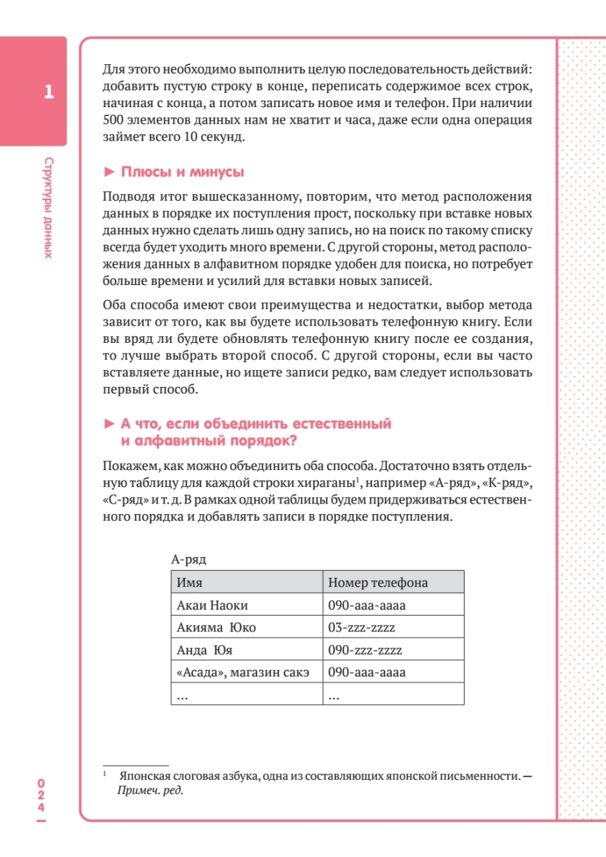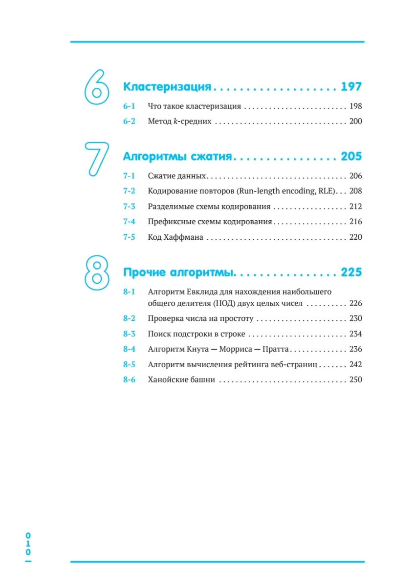 Эта яркая книга делает изучение алгоритмов и структур данных простым и увлекательным. Благодаря полноцветным иллюстрациям, схемам и наглядным примерам сложные концепции становятся понятными даже новичкам. Вы узнаете, что такое эффективность алгоритмов, как работают сортировка, поиск, графы и хеш-таблицы, а также познакомитесь с криптографией, сжатием данных, защитой информации и машинным обучением (алгоритмом кластеризации). Материал изложен так, чтобы вы не просто запомнили алгоритмы, но и научились применять их на практике.