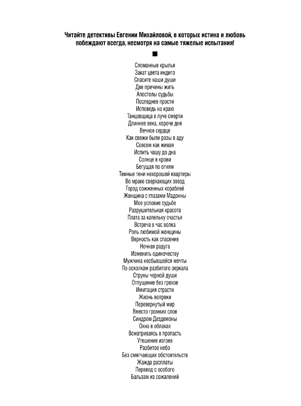 У писательницы Марины много поклонников, но завелись и враги. Кто желает ей смерти и вполне способен добиться своей цели? Это может выяснить только опытный специалист по расследованиям...