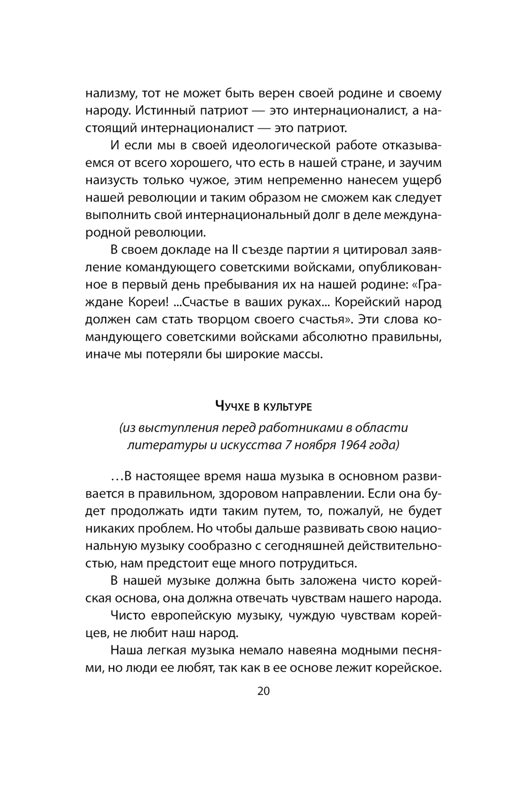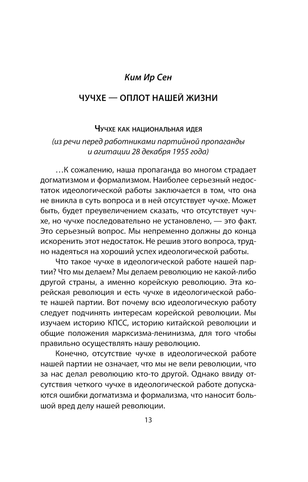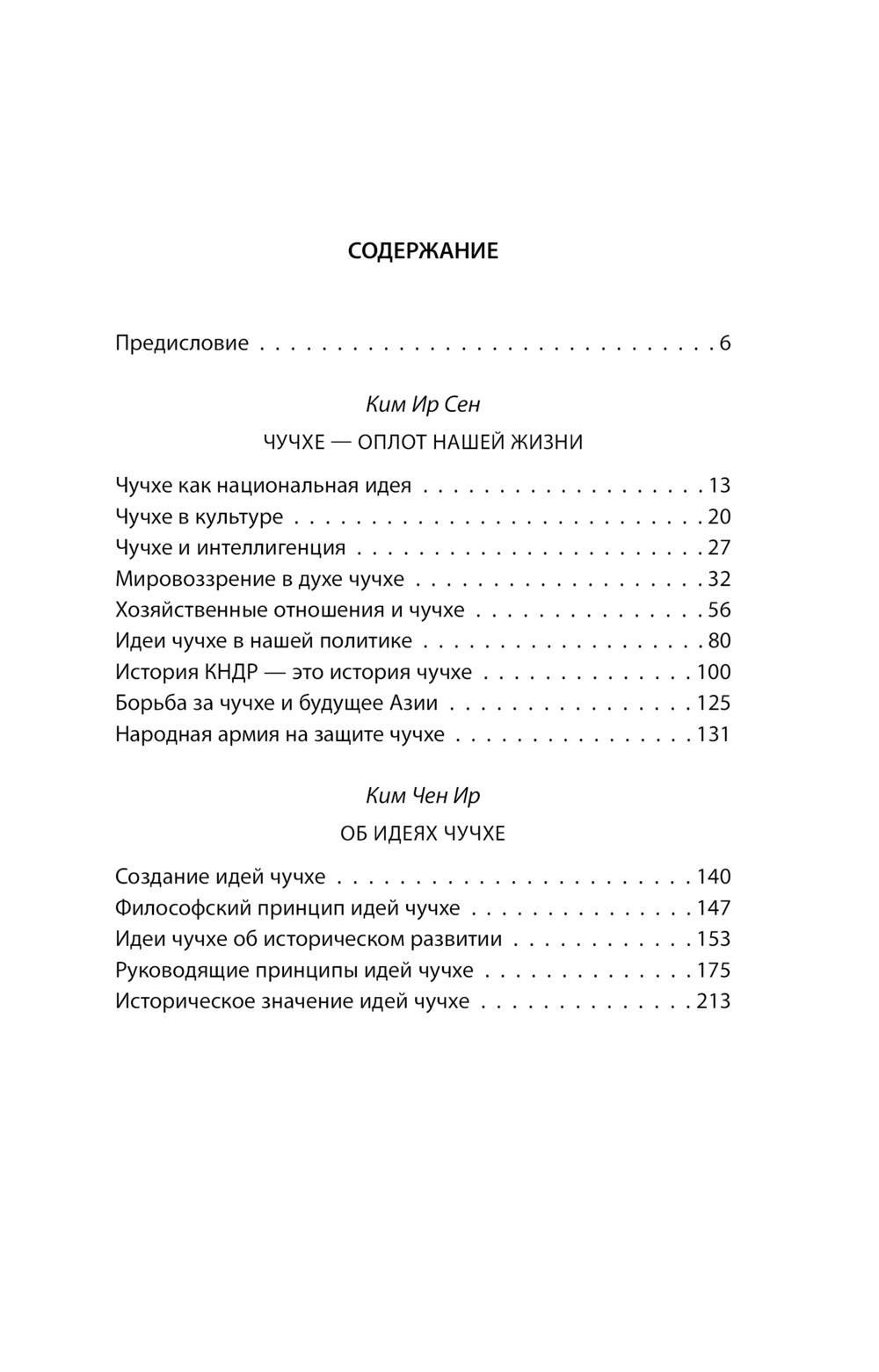В книге Ким Ир Сена и Ким Чен Ира собраны их наиболее значительные произведения о чучхе, показывающие, каким образом государство может развиваться практически независимо от внешнего мира, опираясь исключительно на свои традиции и обычаи.