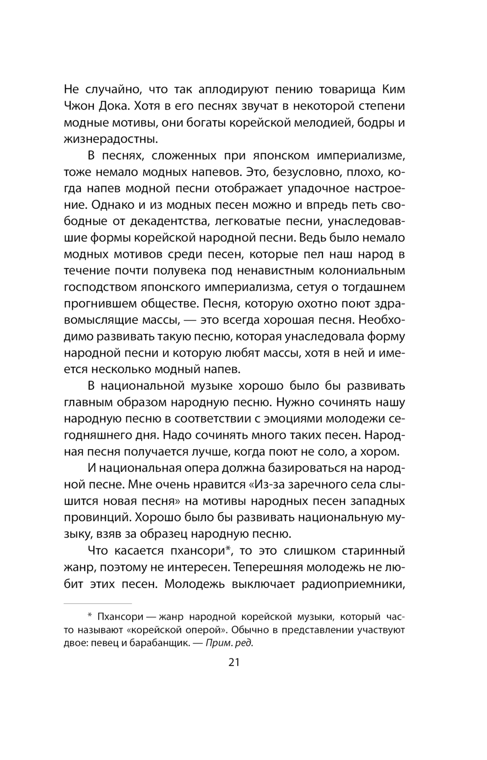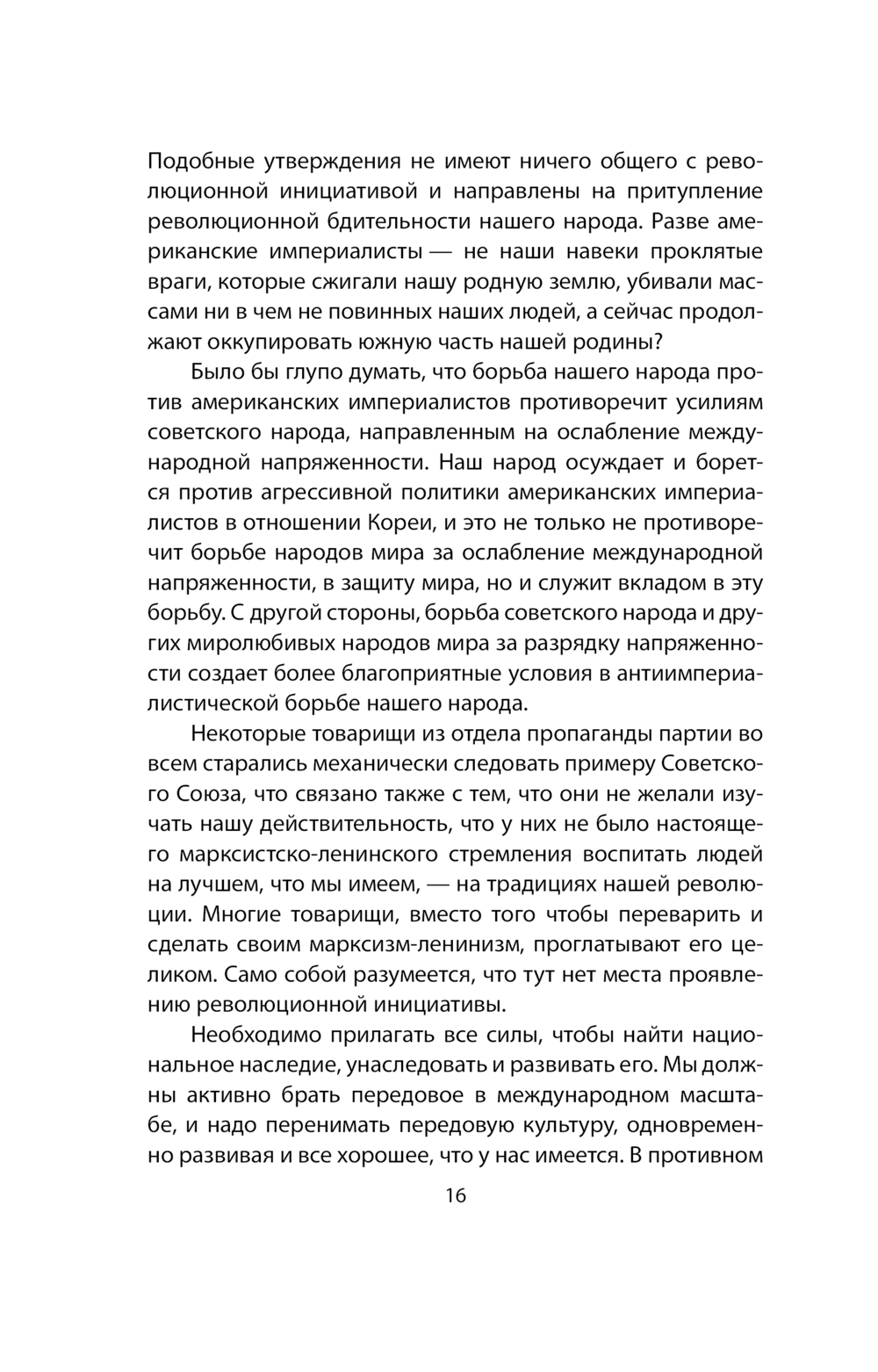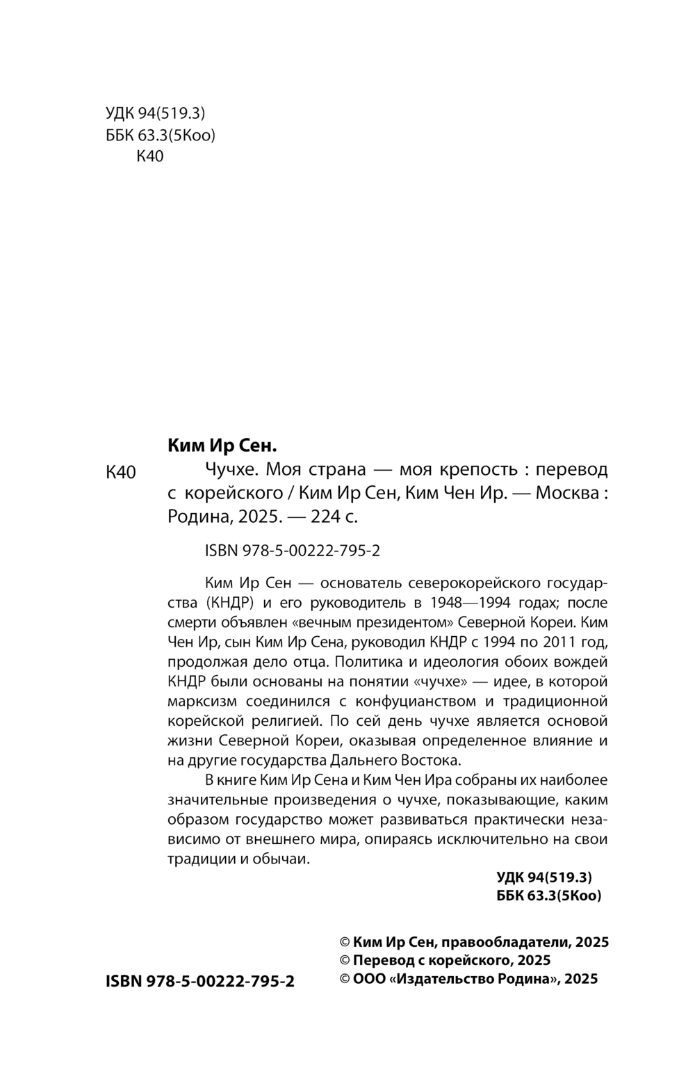 В книге Ким Ир Сена и Ким Чен Ира собраны их наиболее значительные произведения о чучхе, показывающие, каким образом государство может развиваться практически независимо от внешнего мира, опираясь исключительно на свои традиции и обычаи.