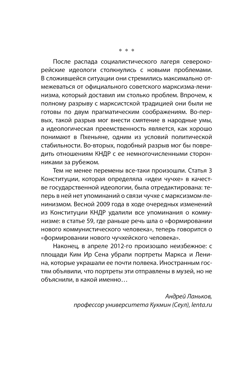 Ким Ир Сен – основатель северокорейского государства (КНДР) и его руководитель в 1948-1994 годах; после смерти объявлен "вечным президентом" Северной Кореи. Ким Чен Ир, сын Ким Ир Сена, руководил КНДР с 1994 по 2011 годы, продолжая дело отца. Политика и идеология обоих вождей КНДР были основаны на понятии "чучхе", – идеи, в которой марксизм соединился с конфуцианством и традиционной корейской религией. По сей день "чучхе" является основой жизни Северной Кореи, оказывая определенное влияние и на другие государства Дальнего Востока.