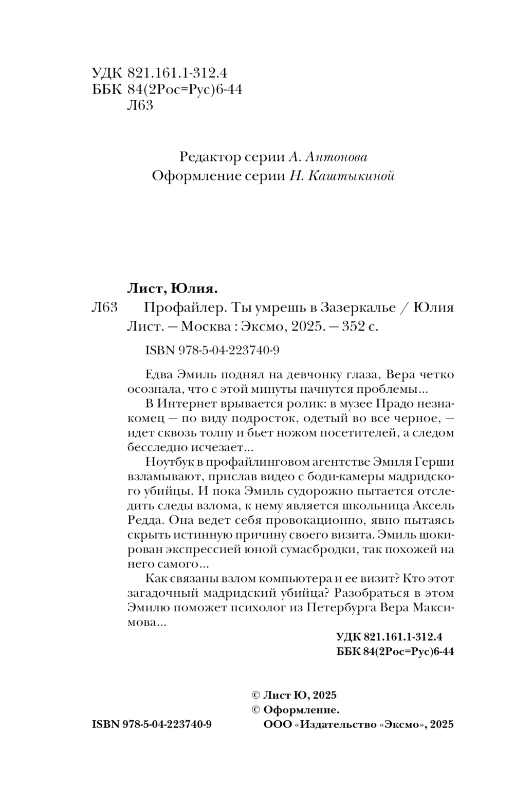 | Изготовитель | ООО «Издательство «Эксмо». РФ, г. Москва, ул. Клары Цеткин, 18, корп. 5 |