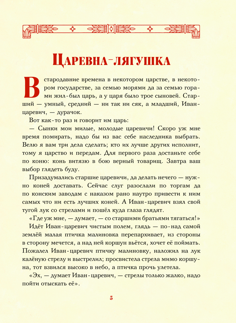 В этой книге собрано шесть жемчужин из бесценного наследия устного народного творчества – волшебных русских сказок: "Царевна-лягушка", "Кощей Бессмертный", "Кремешок", "Ивашечка и ведьма", "Сивка-Бурка, вещий Каурко", "Морозко", "Царь-девица". Незабываемые, волнующие образы героев изящно и красочно воссоздал в своих иллюстрациях художник Игорь Егунов.