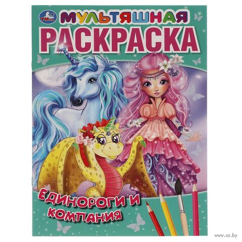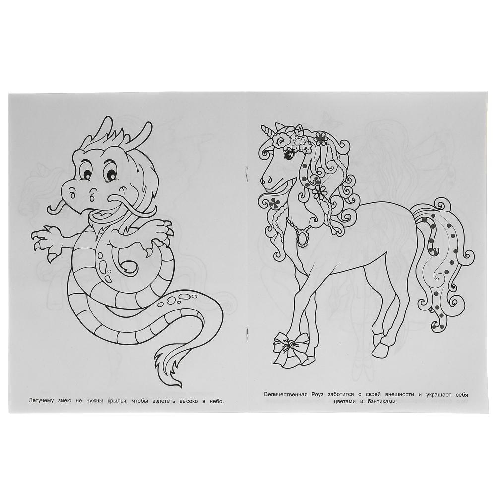 Мультяшная раскраска "Единороги и компания" обязательно понравится маленьким художникам: