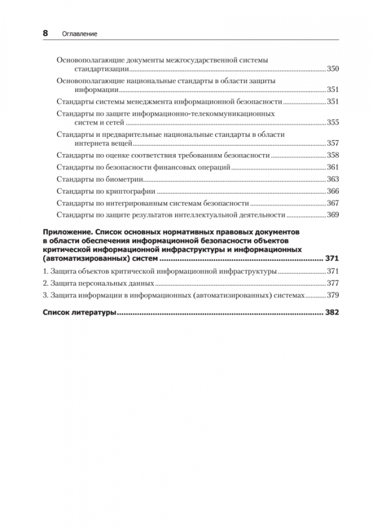 В учебном пособии рассмотрено более 300 действующих открытых документов национальной системы стандартизации Российской Федерации, включая международные и межгосударственные стандарты в области информационной безопасности по состоянию на начало 2023 года. Приведен список нормативных документов регуляторов по защите объектов критической информационной инфраструктуры, информационных систем персональных данных, АСУ ТП.