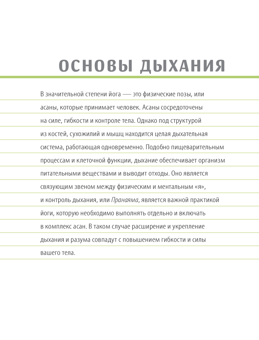 Практика йоги, возникшая в Индии тысячи лет назад, направлена на развитие тела, ума и души. Пошаговые фотографии и анатомические иллюстрации, представленные в этой книге, подскажут, как выполнить ту или иную асану, объясняют, какие мышцы напряжены в каждой позе. Так же вы найдёте полезные подсказки, как правильно выполнять и удерживать асану, как найти позу, которая лучше позволяет сосредоточиться на определенных областях вашего тела.